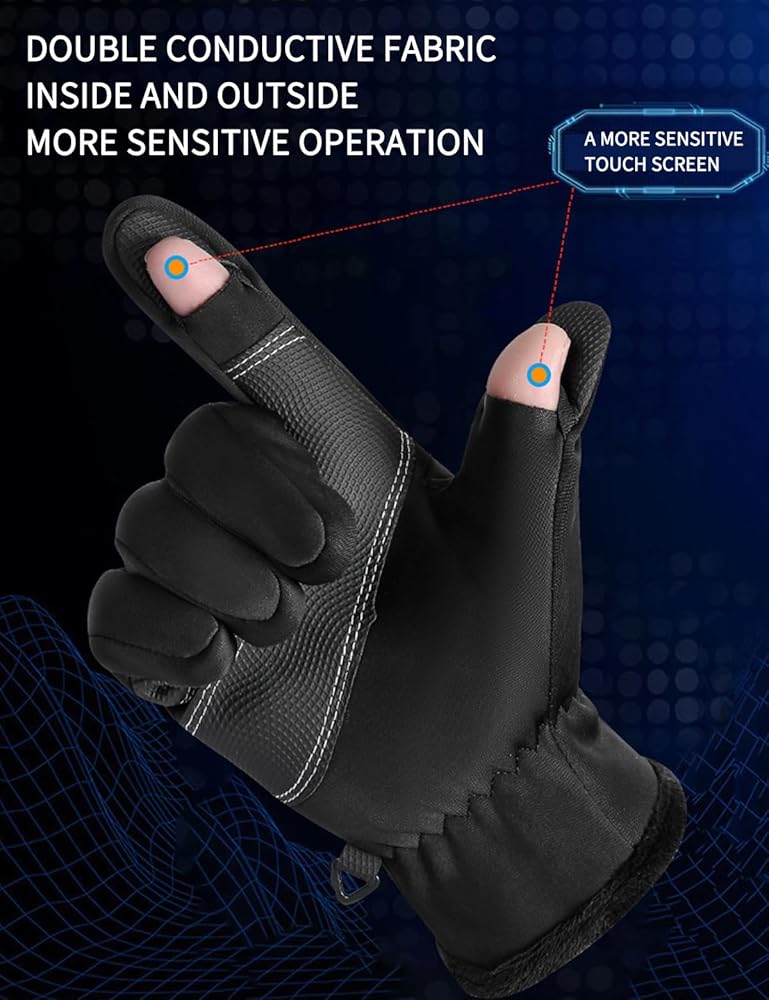 Fashionable and Functional: The Joyshe winter fishing gloves feature a thumb and index finger opening design, allowing you to expose just your thumb and index fingertip when needed. This makes it easy to operate your phone screen, change bait, and organize your fishing gear without fully removing the gloves. Ideal for ice fishing, skiing, hiking, cycling, motorcycle riding, hunting, and more.