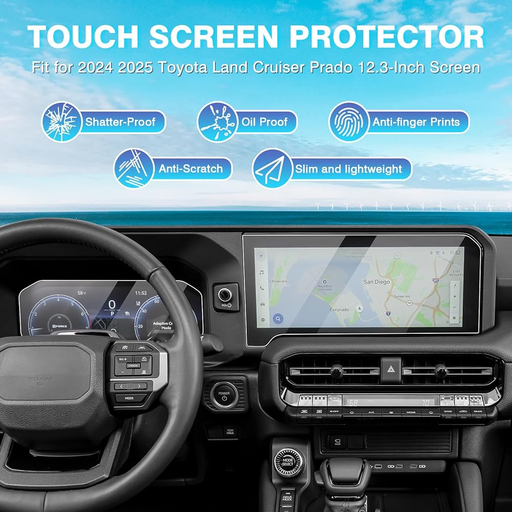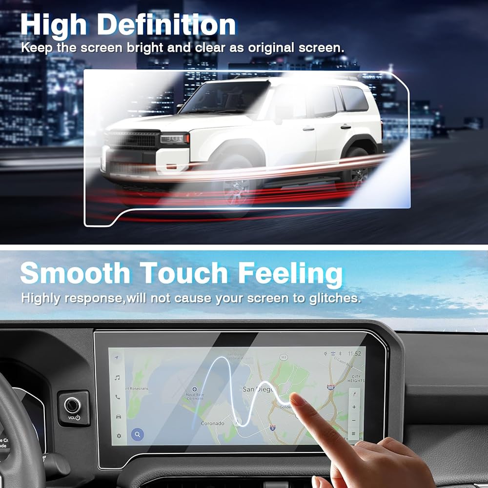 【ملاءمة مثالية ، لا توجد فقاعات】 مصممة محسّة لـ 2014 2025 Toyota Land Cruiser (Land Cruiser/First Edition) Savigation and Dashboard 12.3inch. قطع تماما ، يناسب جيدا ، التثبيت بسهولة ، لا فقاعات أو بقايا تركت وراءها.