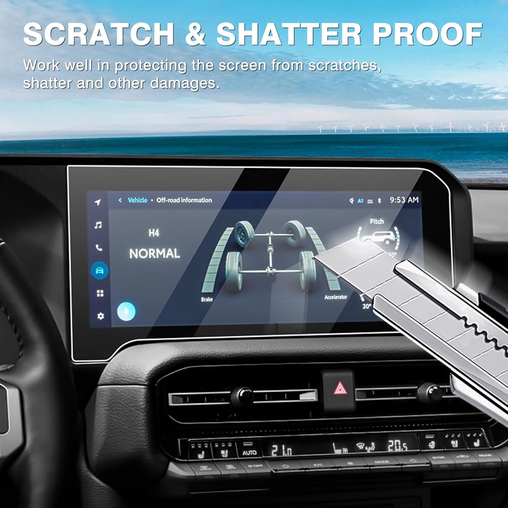【الزجاج المقسى الممتاز】 مصنوع من الزجاج عالي الجودة ، صلابة السطح 9H ، مضاد للوهج ، مضاد لبصمات الأصابع ، مضاد للخدش ومقاوم. يوفر واقي الشاشة الزجاجي المقسى لـ 2024 Toyota Land Cruiser حماية شاملة ضد الخدوش وغيرها من أشكال الأضرار ، ويضمن مشاهدة واضحة وسلسة في جميع الأوقات.