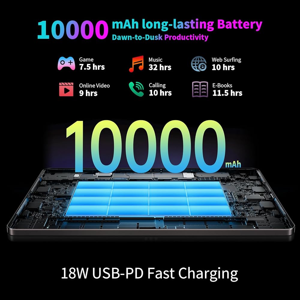 【بطارية Helio G99 CPU + 10000mAh】 يتميز Teclast T65MAX Android Tablet بشريحة Mediatek Helio G99 القوية ، مما يوفر أداء سريعًا وفعالًا للطاقة ، وهو مثالي للألعاب على شاشة 13 بوصة. تضمن بطاريةها 10000mAh ما يصل إلى 10 ساعات من الاستخدام دون انقطاع ، سواء كانت مشاهدة الأفلام أو الاستماع إلى الموسيقى. بالإضافة إلى ذلك ، فإن ميزة الشحن السريعة 18W توفر لك الوقت عن طريق إعادة شحن الجهاز اللوحي بسرعة