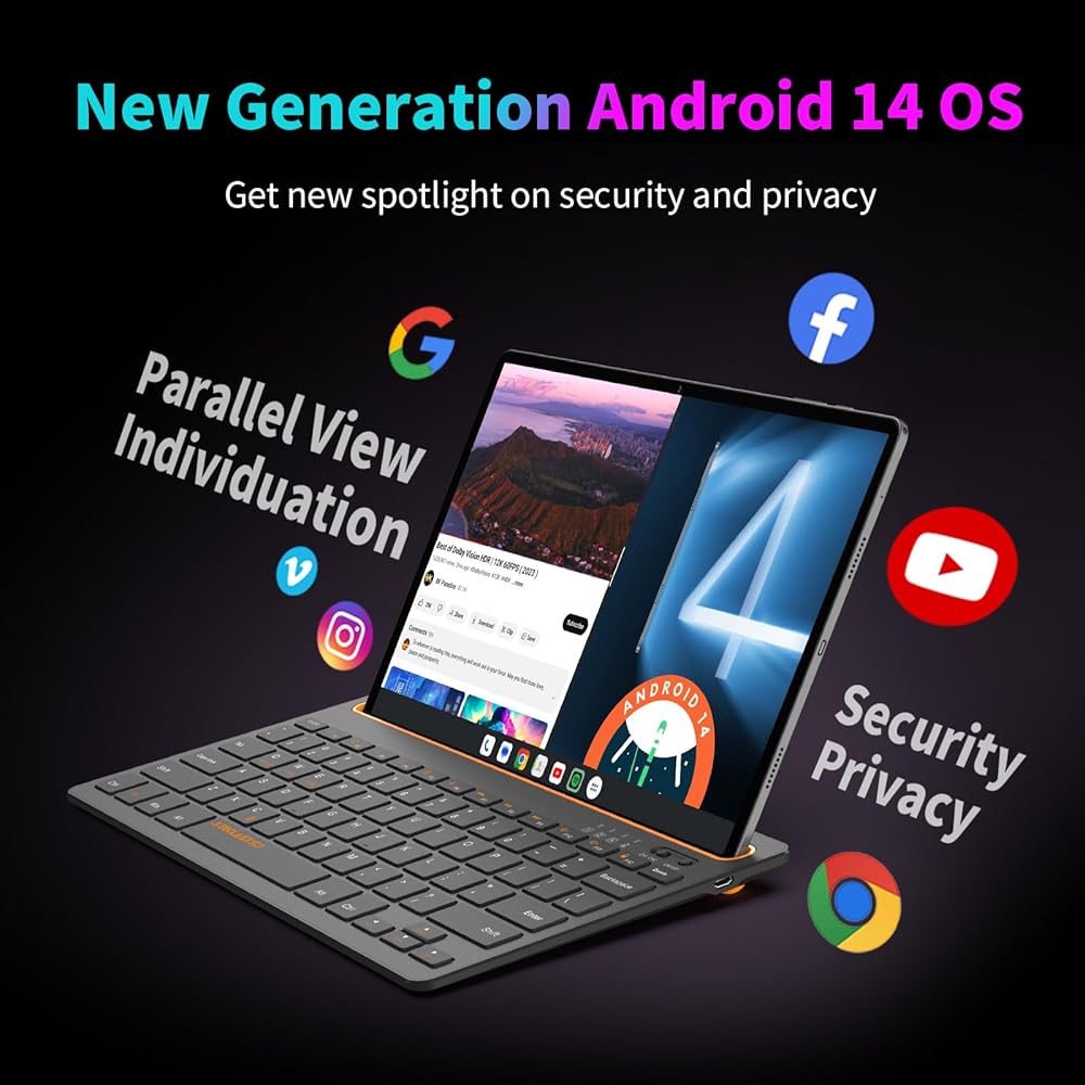 【Android 14 + 256GB ROM】 تشغيل على Android 14 ، دع الجهاز اللوحي أكثر ذكاءً وأكثر أمانًا وأسرع. يأتي جهاز Android 14 Tablet مع ذاكرة الوصول العشوائي 8 جيجا بايت ، ويمكن توسيعه بواسطة 12 جيجابايت إضافية في الإعدادات ، ويوفر تخزين 256 جيجابايت مع دعم يصل إلى 1 تيرابايت عبر بطاقة TF. هذا يضمن مساحة كبيرة لجميع التطبيقات المفضلة لديك والصور ومقاطع الفيديو والموسيقى