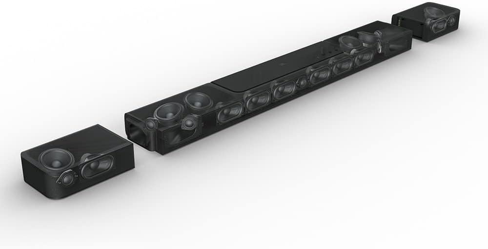 The ultimate 3D surround experience that will blow you away. You've never heard anything like the JBL BAR 1300X PRO in your living room or anywhere else. More than just a great soundbar, it's a full sound system. It features MultiBeam and six up-firing drivers—four in the bar and two in the detachable battery-powered surround speakers—that deliver massive Dolby Atmos and DTS:X 3D surround sound, centering you in your music, movies, and games. 1170W of total output power and thrilling bass from a 12” subwoofer is more than enough to make the room shake. Though, you'll never miss a word with due to our PureVoice technology, which makes sure the dialogue is clear even when other sounds are at their loudest. When you want to enjoy your favorite tunes choose streaming via either AirPlay, Alexa Multiroom Music (MRM), or Chromecast built-in that give you over 300 music streaming options. But that's not all. Your choices are as unlimited as you are because you can also pair the soundbar to your Bluetooth device. You can even take one of the detachable speakers (or both for powerful stereo sound) out to your kitchen or patio and enjoy listening to your favorite music or podcast there. Features True Dolby Atmos, DTS:X, and MultiBeam Surround Sound Real surround sound with detachable surround speakers 12” Wireless subwoofer PureVoice Dialogue Enhancement Technology 1170W output power. Built-In Wi-Fi with AirPlay, Alexa Multi-Room Music and Chromecast built-in. Works with voice assistant-enabled speakers HDMI eARC with 4K Dolby Vision passthrough Easy sound calibration. Our exclusive bundle includes (1) JBL BAR 1300X PRO Soundbar and (1) Sanus SAC-21HDMI2 2.0 meter/6.56 ft. 8K Ultra High Speed HDMI Cable with cable ties to neatly connect your soundbar to your cable box or television.