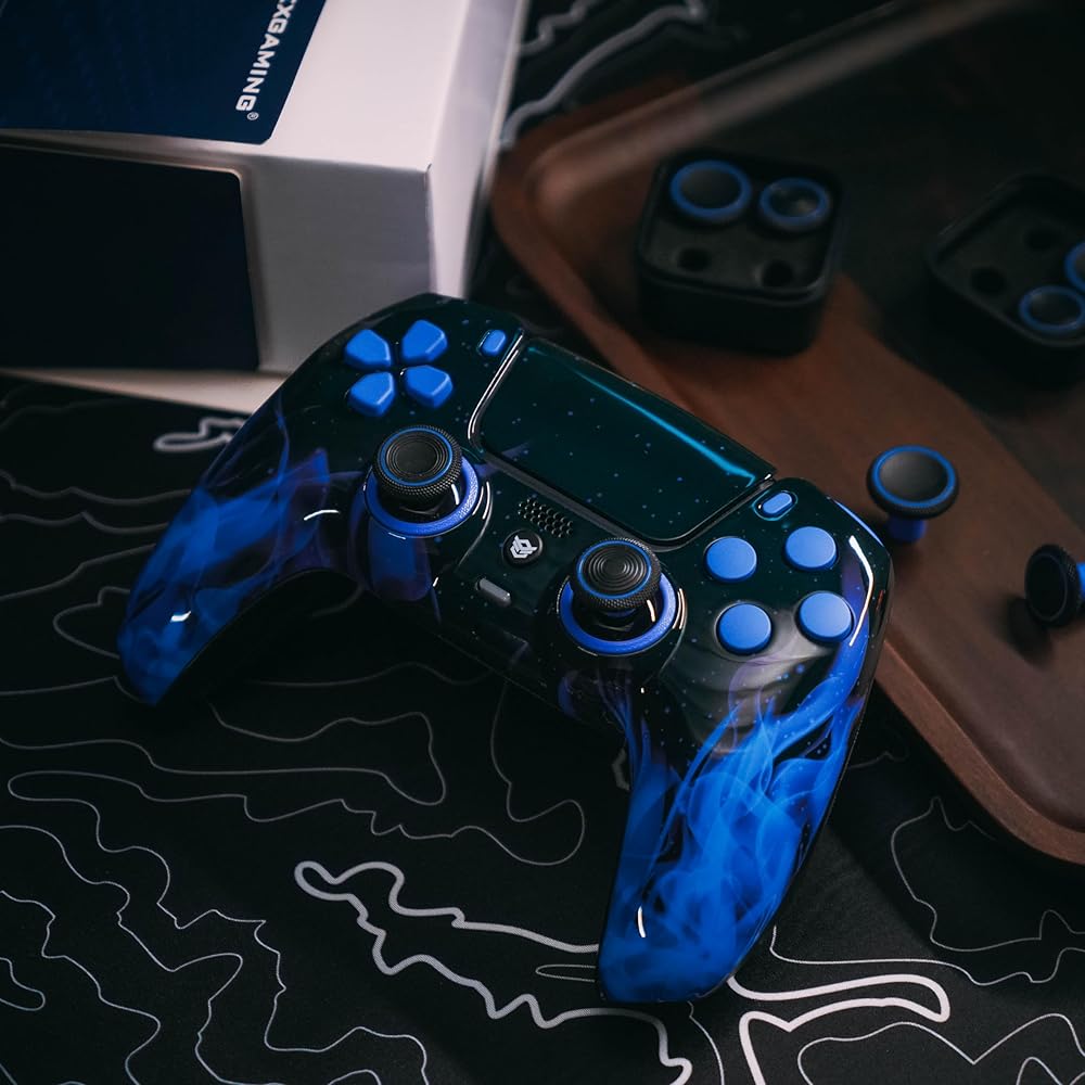 Hexgaming Ultimate Wireless Controller متوافق مع PS5 ، وحدة تحكم ألعاب FPS المعدلة مع المجاذيف - 4 أزرار خلفية - مشغلات الشعر - إبهام القابلة للتبديل - Blaze Blaze