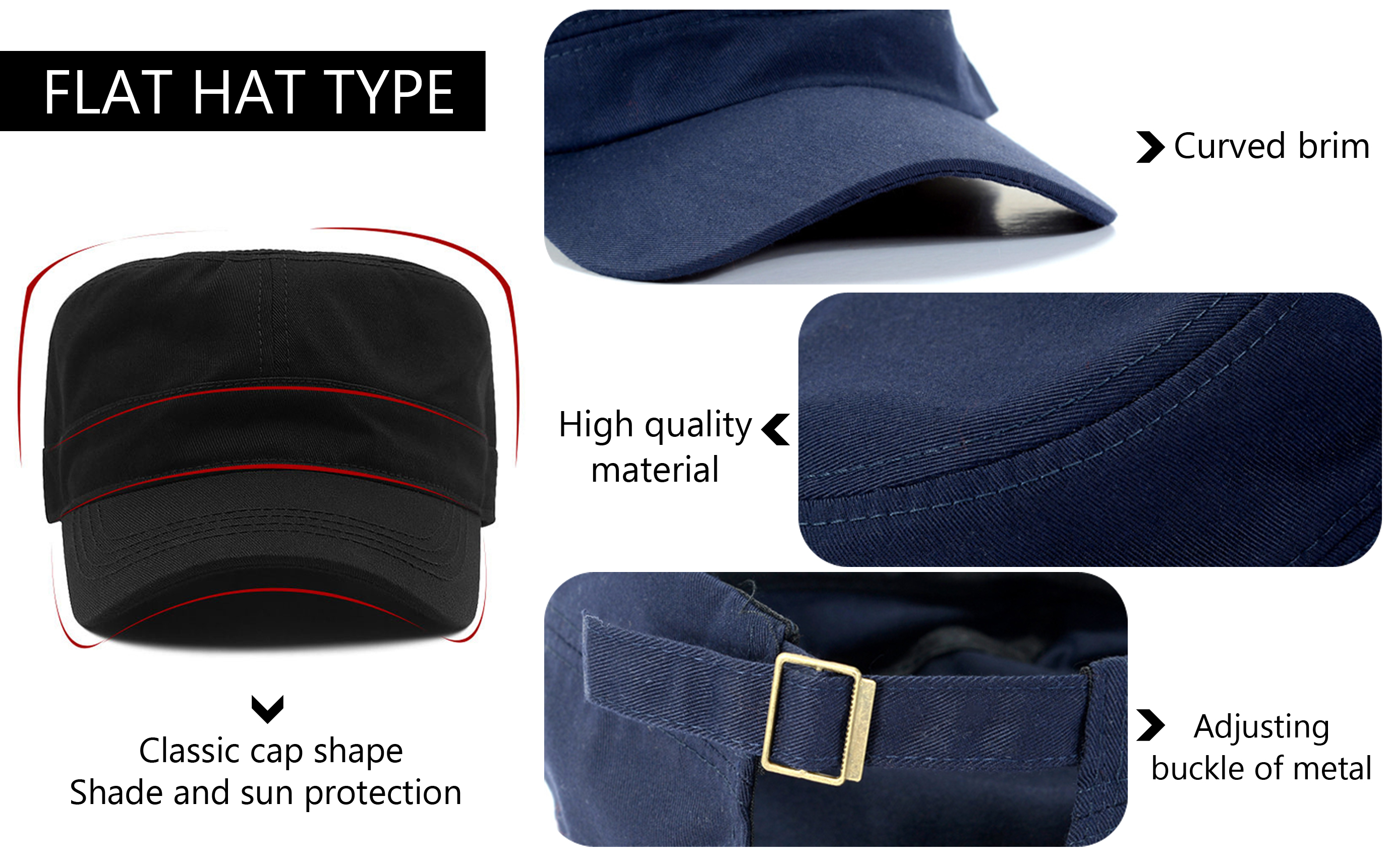 Lertree قابلة للتعديل للجنسين المسطحة Twill كلاسيكية البيسبول قبعة العسكرية قبعة العسكرية 22-23.6 في Cadet Cap (أسود)
