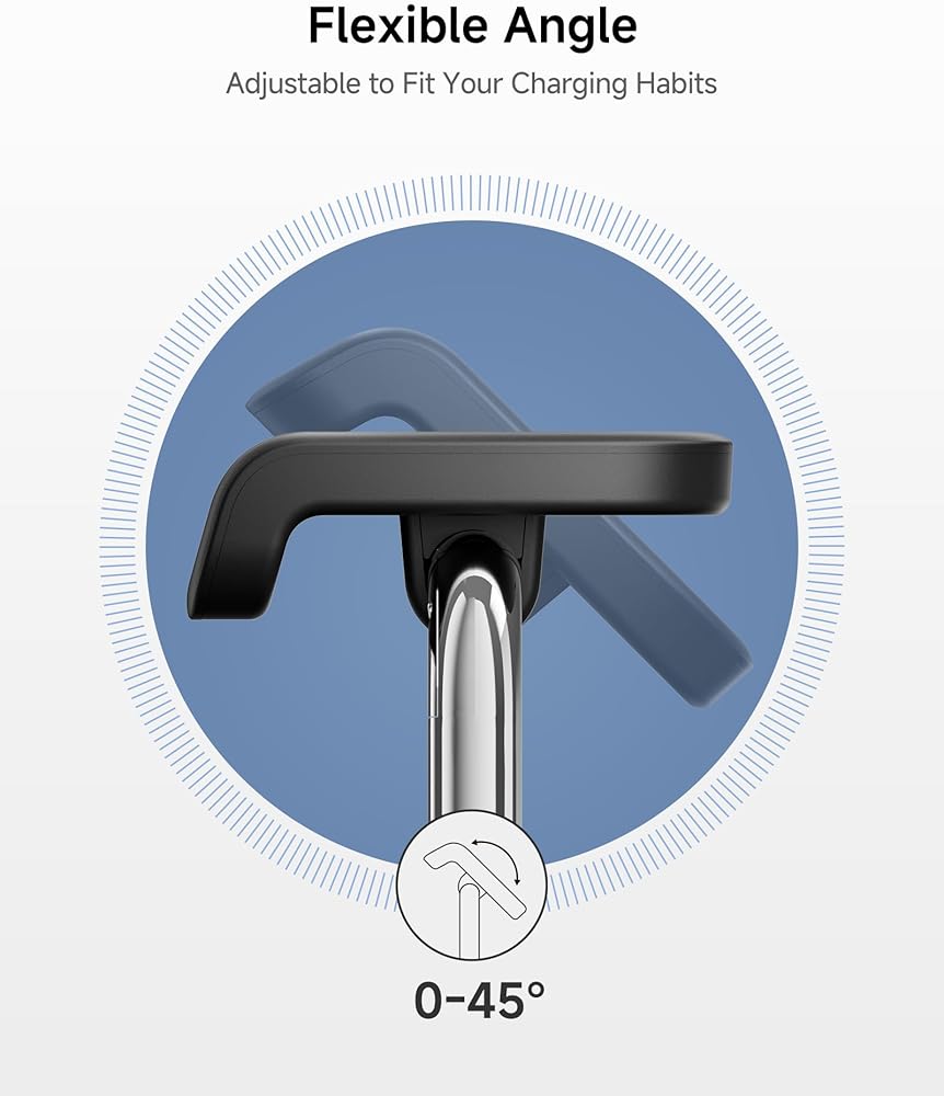 زاوية الشحن القابلة للتعديل: يدور دعم نطاق الساعة من 0 درجة إلى 45 درجة ، مما يتيح لك ضبط الزاوية لتجربة مشاهدة أكثر راحة أثناء الشحن.