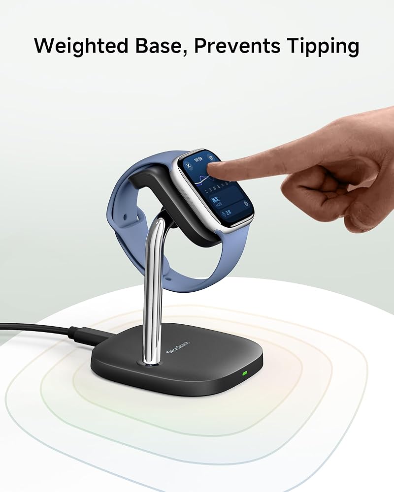 Watch Charger Stand for Apple Watch Series 10/Ultra 2/Ultra/9/8/7/6/5/4/3/SE 2 ، Swanscout 505a ، شاحن لاسلكي مغناطيسي لـ IWatch ، لـ AirPods 4/Airpods Pro 2
