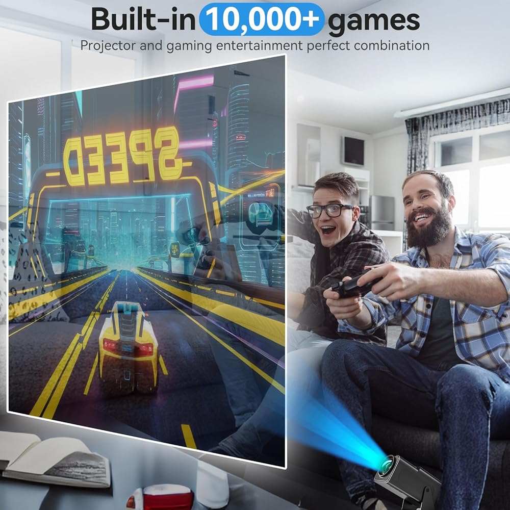 At the same time, with a high-definition 4K projector, large screen, high brightness, excellent color reproduction, whether it is a dim bedroom or a spacious living room, it can project clear, sharp, lifelike images, creating an immersive gaming and viewing experience for you.