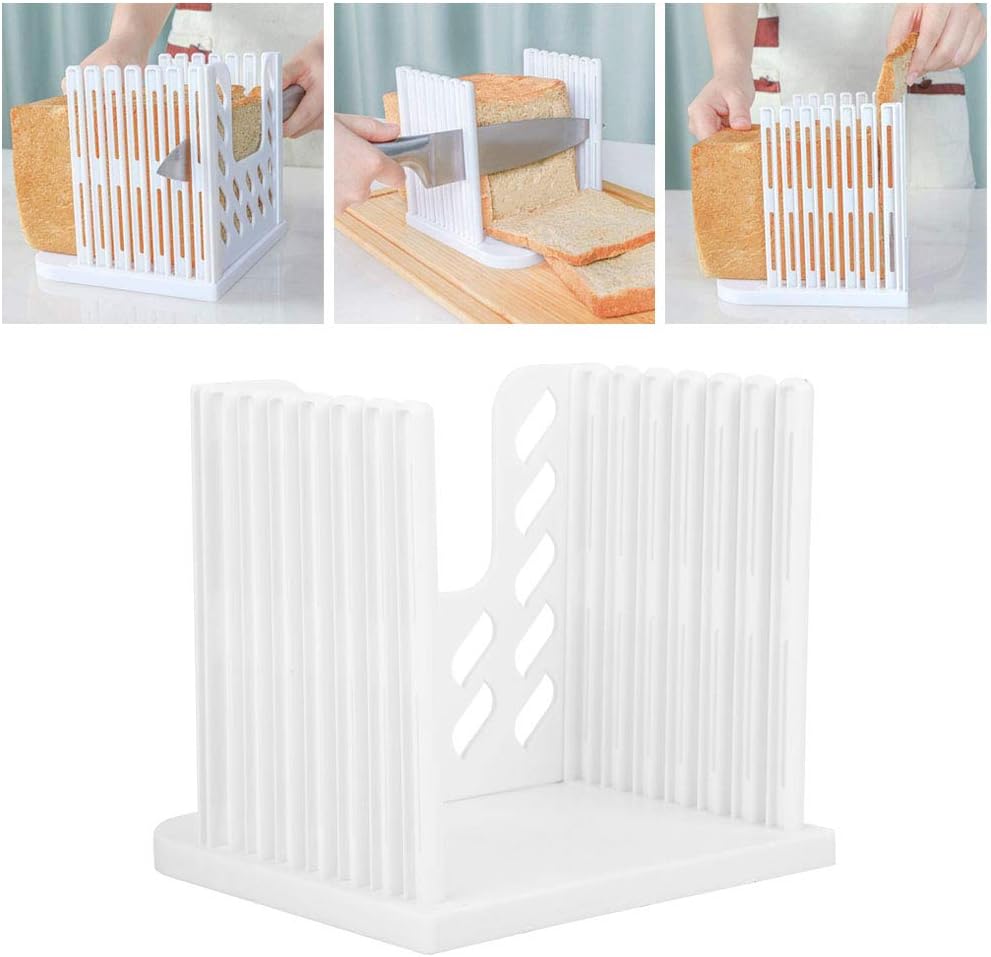 【High Quality Material】The bread slicer is made of food grade material, durable, high temperature resistant, reusable, more lightweight and space saving compared to wooden slicers, our bread slicer guide can help you cut anything into equal slices.