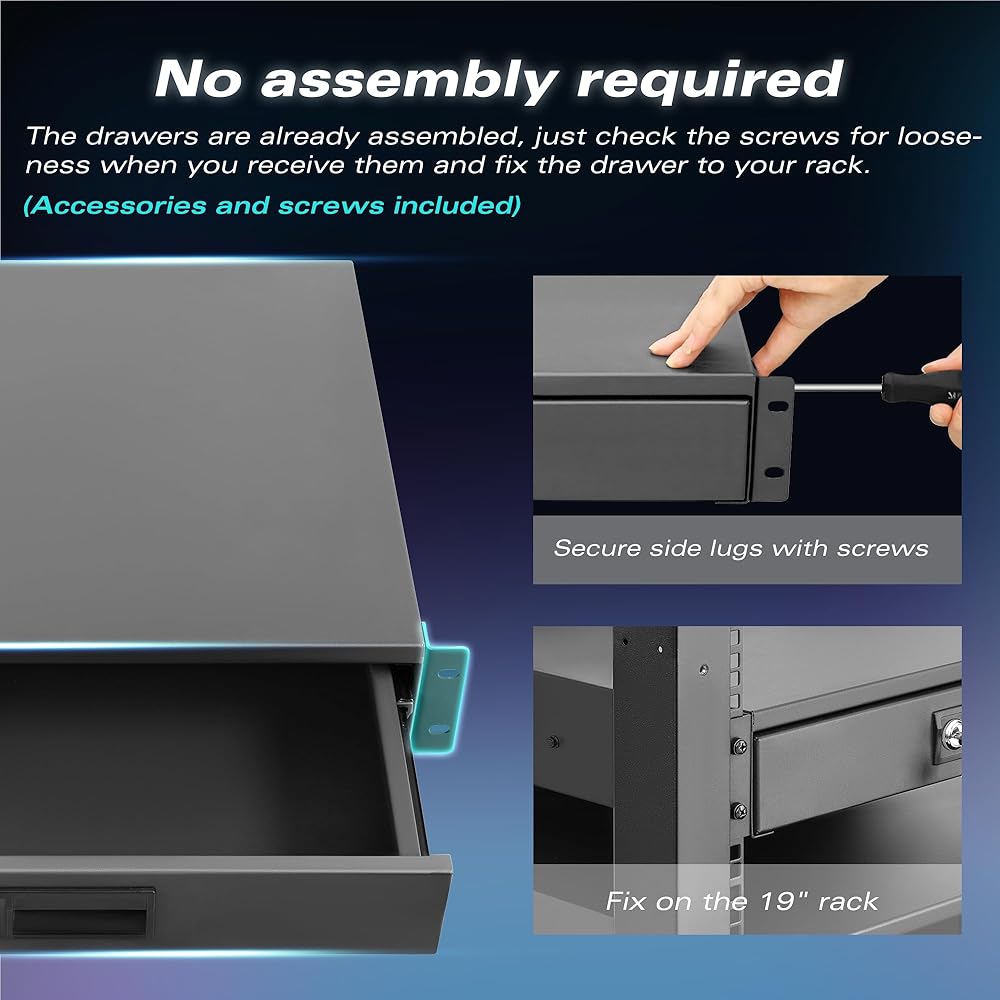 【التطبيقات متعددة الاستخدامات】 يأتي درج Mount Rack الذي يتم تجميعه باستثناء ، يتم تجميع الأدراج بالفعل وتحتاج فقط إلى تثبيت على الحامل كما هو مطلوب (يأتي مع العروات والبراغي الجانبية). مناسبة لإنشاءات مختلفة ، بما في ذلك مراكز البيانات وغرف الخادم وبيئات المكاتب/المكاتب المنزلية الصغيرة.