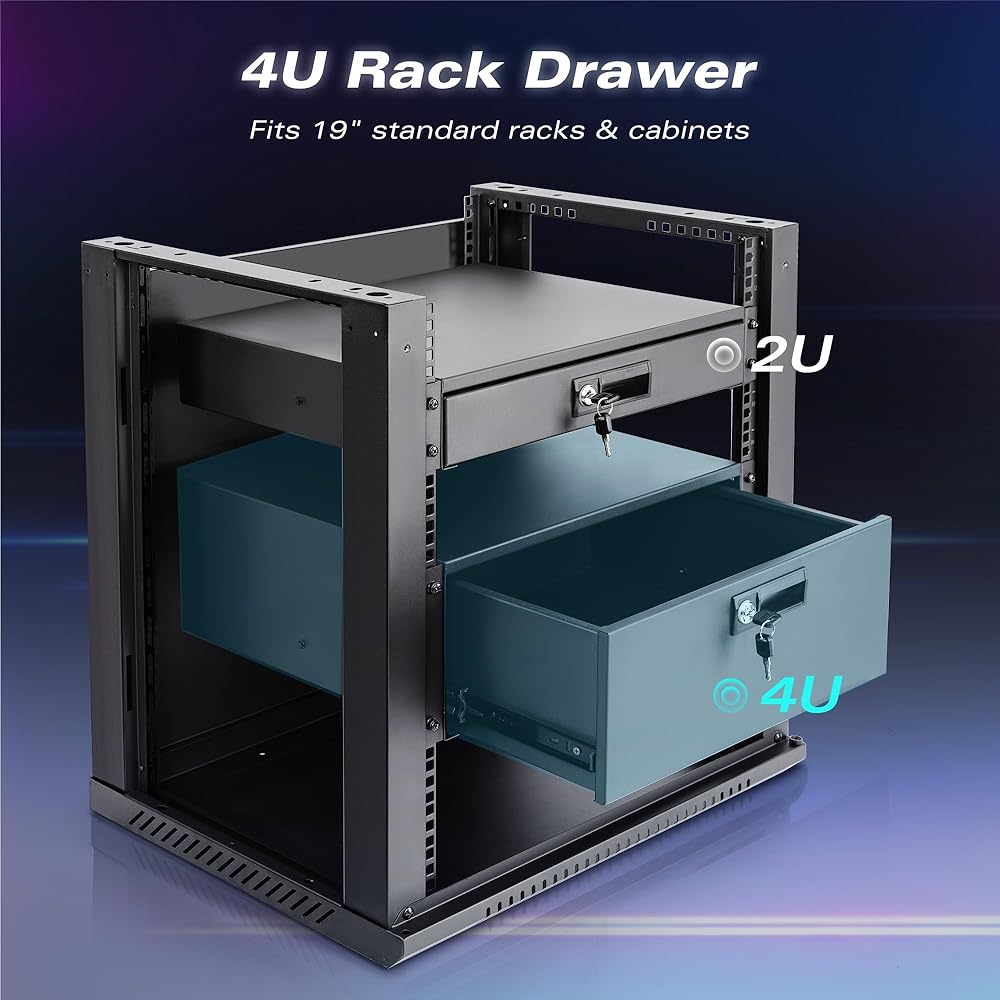 【2U رف درج】 درج شبكة Artake المصمم كحالة كمبيوتر متعددة الاستخدامات ، يتميز بدرج ملائم للوصول السريع والسهل إلى المعدات الخاصة بك. متوافق مع رف الخادم مقاس 19 بوصة أو خزانة الشبكة أو حاوية مقاس 19 بوصة.