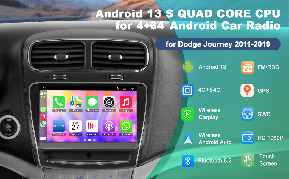 【Wireless Apple Carplay & Android Auto】 هذه Dodge Journey 2011 2012 2013 2014 2015 2015 2017 2018 2019 بديل للترقية الراديوية متوافق مع iOS Carplay و Android Auto ، فقط تواصل مع هاتفك الذكي لإيقاظ مساعد الصوت Siri أو Google في Google المكالمات الهاتفية ، والوصول إلى الموسيقى الخاصة بك ، وإرسال واستقبال الرسائل ، والحصول على الاتجاهات ، والمزيد أثناء التركيز على الطريق.