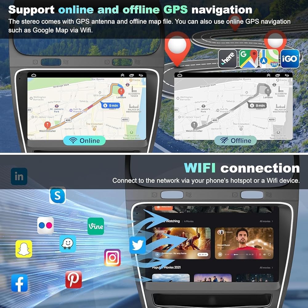 【نظام Android 13】 مستقبلات صوت السيارات الخاصة بنا مع نظام IPS اللمسات البالغ 9 بوصات مضمّن 4G RAM + 64G ROM Android 13 ، يضمن التشغيل السلس والاستجابة الأسرع ، و 64 جيجابايت ROM لمزيد من التطبيقات المثبتة. wifi ، الشبكة ، وركوب الأمواج عبر الإنترنت المتاحة. بعد الاتصال بـ WiFi أو نقطة ساخنة شخصية ، يتيح لك استريو السيارة هذا تثبيت تطبيقات Android من متجر التطبيقات. أنت تقود سيارتيو سيارة ذكية مثل جهاز iPad.