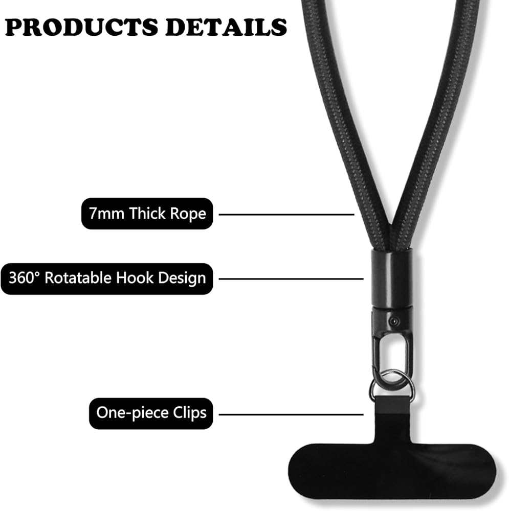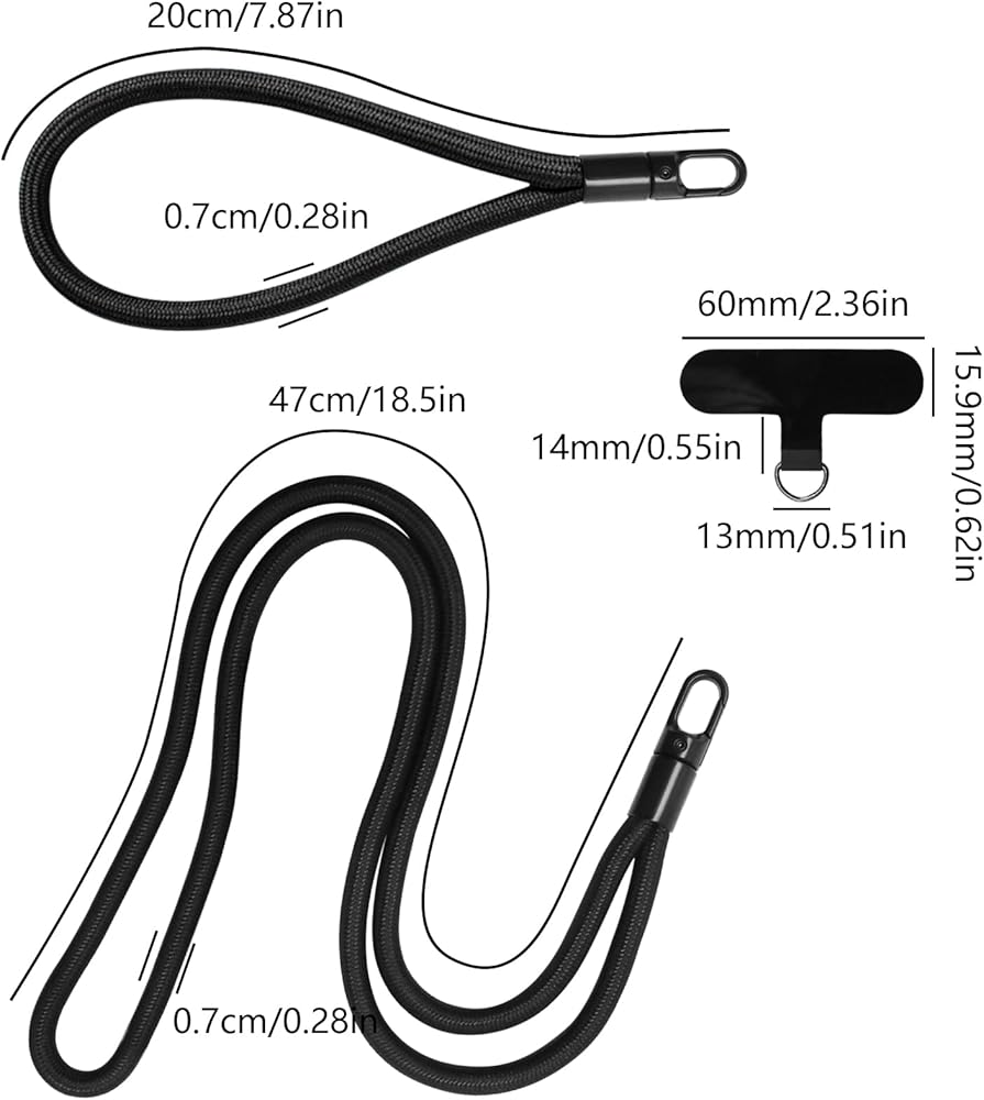 • 【Quality Material】The phone wrist strap is made of great-quality fabric, and the material is very good-quality. There are a total of 2 styles of this set of products, one for the wrist and one for the neck, whether worn on the wrist or on the neck, the fabric is very comfortable and will not make the user feel uncomfortable. The lanyard has a diameter of 7mm, which can withstand a large weight and could protect the phone from theft.