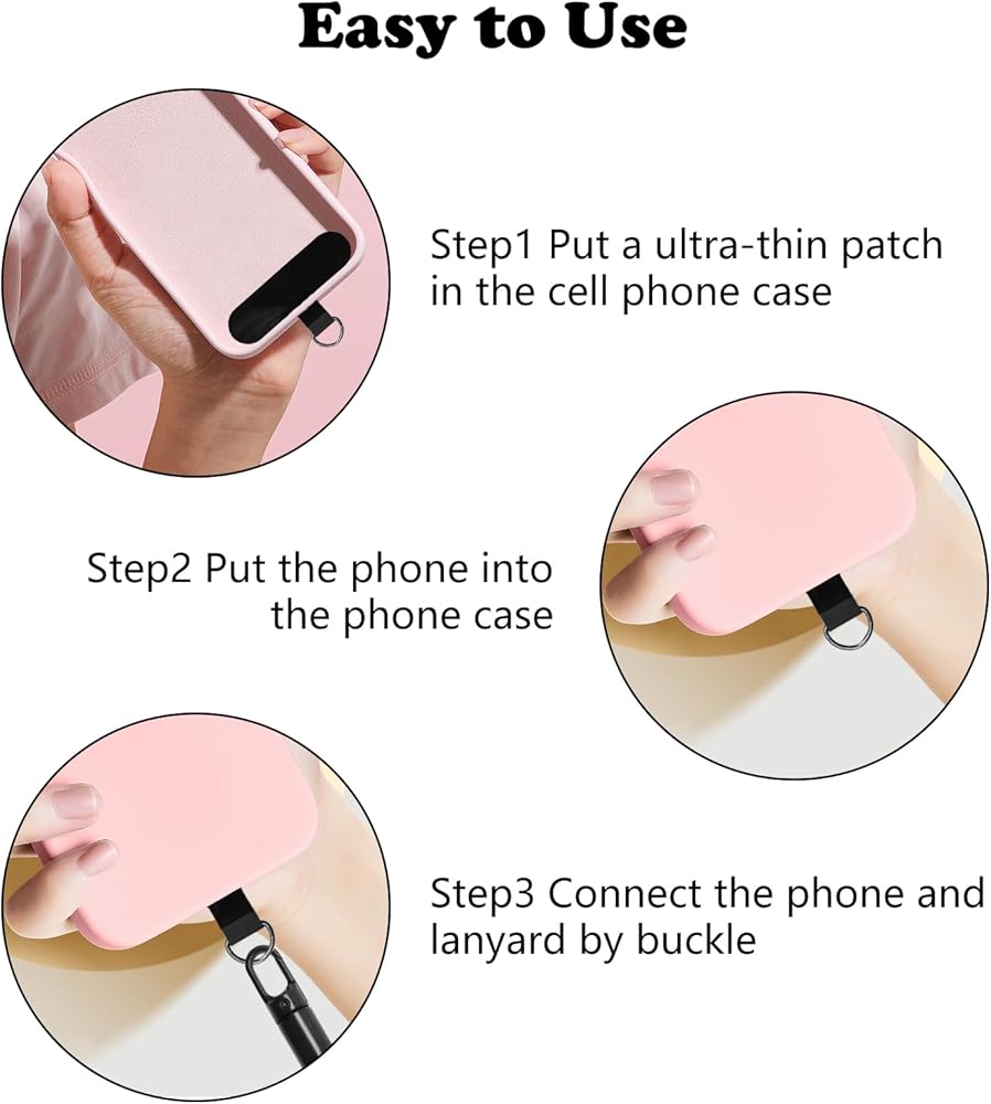• 【Easy To Use】Phone strap wrist is very easy to install. First of all, put the ultra-thin patch of the mobile phone lanyard into the phone case, and the metal ring hook on the patch passes through the charging port at the bottom of the mobile phone case, and then put the mobile phone back into the phone case, press it firmly and firmly around it, and finally use the lanyard hook to hook the metal ring hook on the patch.