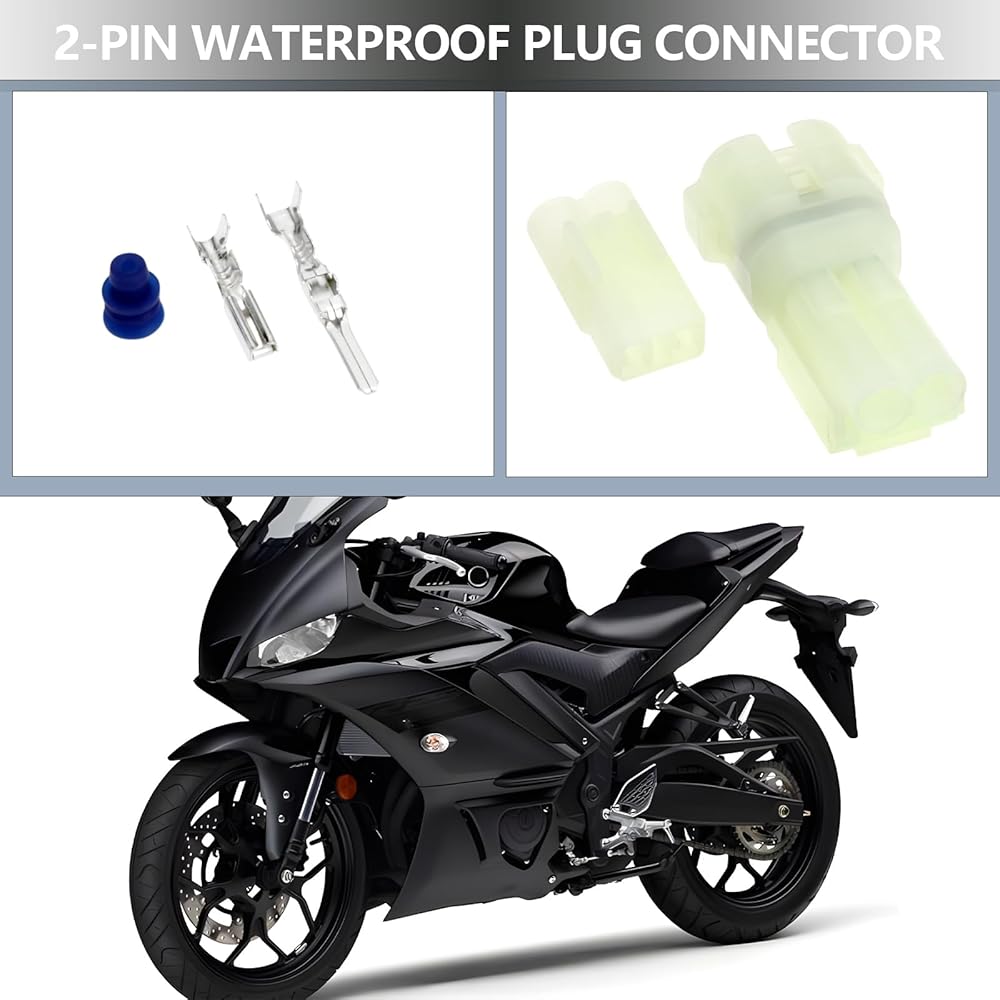 التطبيقات: قابس موصل 2Pin مناسب للدراجة النارية للمركبة ، لكابل سلك قطره 2.5 مم.