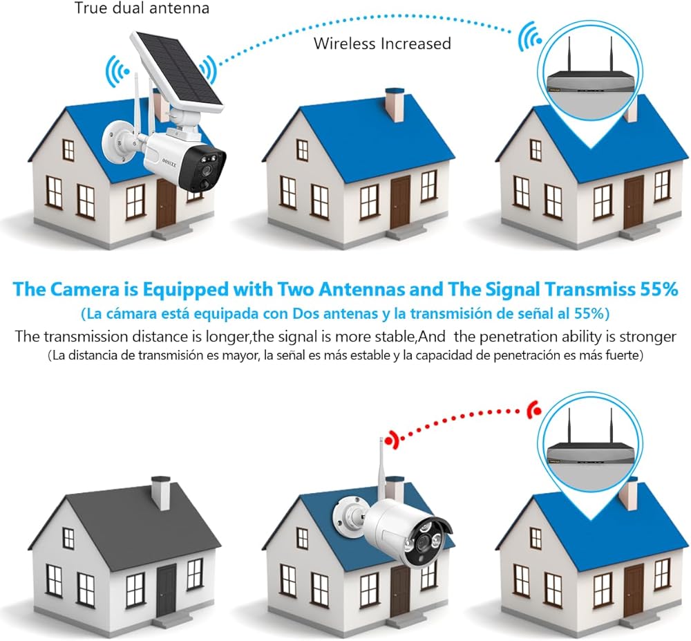{2-antennas lovely lovated} الإشارة اللاسلكية للطاقة الشمسية في الهواء الطلق مهمة للغاية لجميع النظام اللاسلكي. قمنا بترقية الكاميرات الشمسية إلى 2-antennas. تم تعزيز الإشارة اللاسلكية لأمان الأمان اللاسلكي الشمسي ، وتم توسيع مسافة الغطاء بنحو 55 ٪ ، والفيديو أفضل وواضح.