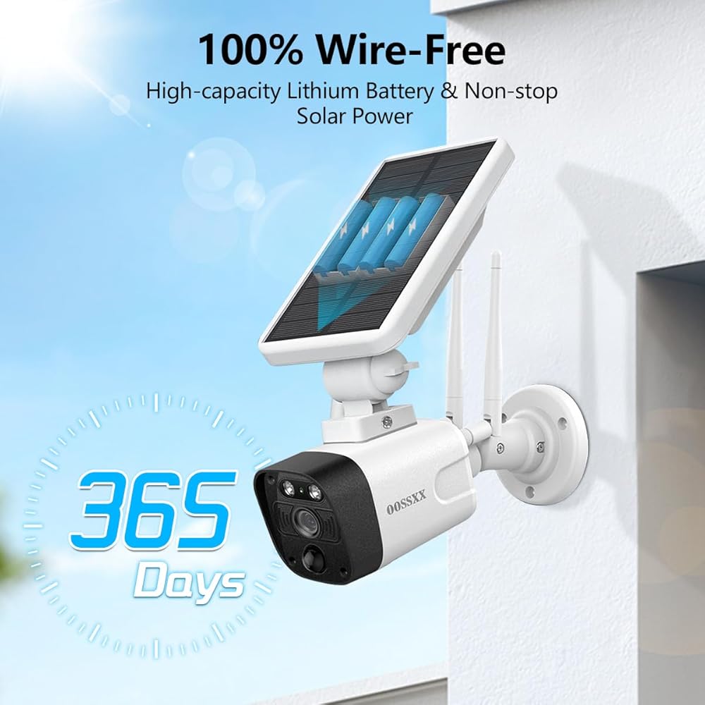{130 ° Ultra Wide-Belar و Day Audio} Camera Solar WiFi Camera Outdoor Wireless Vaneless Old-alues مع عدسة متعددة الطبقات ، توفر لك حوالي 130 درجة زاوية عرض واسعة وتقلل من الأطراف المسدودة من مناطق المراقبة. تدعم كاميرا الأمان الشمسية اللاسلكية أيضًا الاتصال الصوتي في الوقت الفعلي من خلال تطبيق الهاتف. يدعم العديد من المستخدمين (ما يصل إلى 4) لعرضه في وقت واحد على تطبيق الهاتف وبرنامج الكمبيوتر الشخصي والكمبيوتر اللوحي ، ويمكن مشاركته مع أفراد الأسرة غير المحدودين.