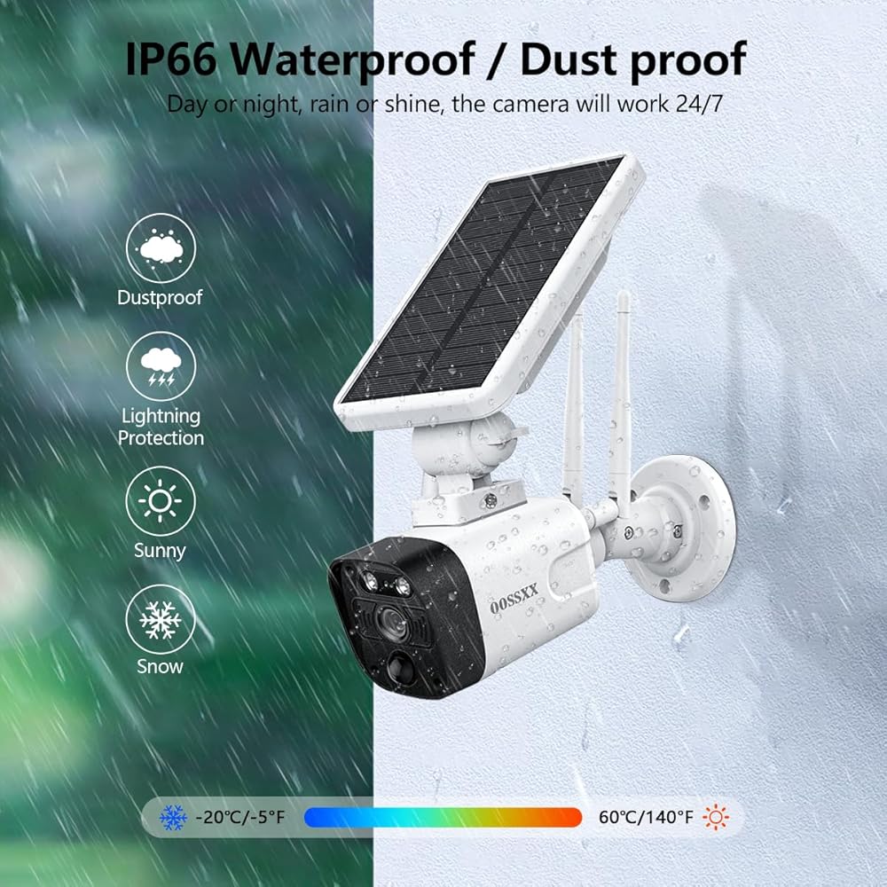 {نظام الطاقة الشمسية اللاسلكية 100 ٪} يتم تشغيل الكاميرات الشمسية لكاميرا CCTV اللاسلكية عن طريق البطارية الشمسية ، لذلك ليست هناك حاجة لتوصيلها. الكاميرا الشمسية الخارجية واي فاي واي فاي صديقة للبيئة وتوفر مراقبة مستمرة على مدار الساعة طوال أيام الأسبوع. IP66 مقاوم للماء مثالي للاستخدام في الهواء الطلق وجميع الأحوال الجوية.