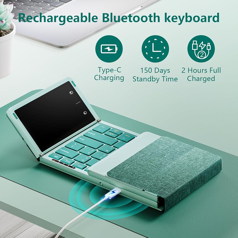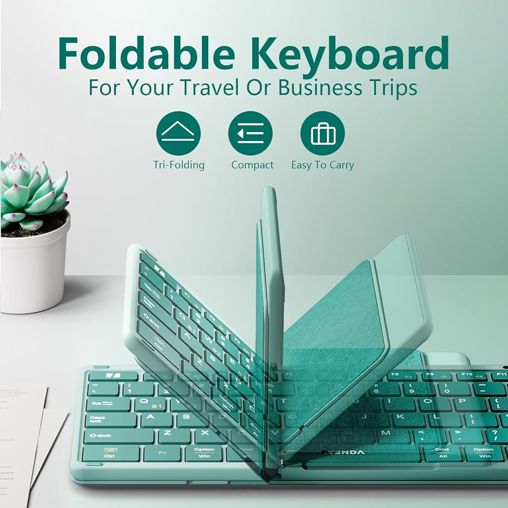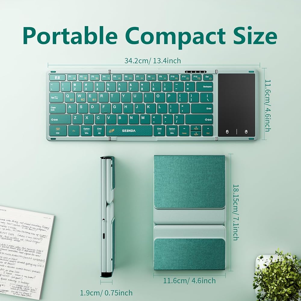لوحة مفاتيح بلوتوث قابلة للطي مع لوحة اللمس ، لوحة مفاتيح قابلة للطي مع PU الجلود والهاتف ، صغيرة ومحمولة لجهاز الكمبيوتر المحمول اللوحي iPad لطلاب الجامعات - Sage Green