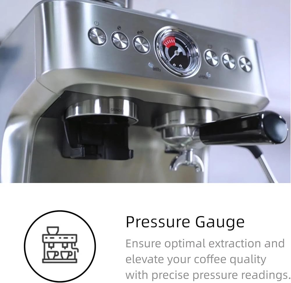 آلات الإسبريسو مع طاحونة ، 20 بار صانع إسبرسو احترافي مع حليب متكافئ و 95 أوقية خزان مياه قابل للإزالة ل Latte و Cappuccino ، صانع قهوة إسبرسو للمنزل ، الفولاذ المقاوم للصدأ