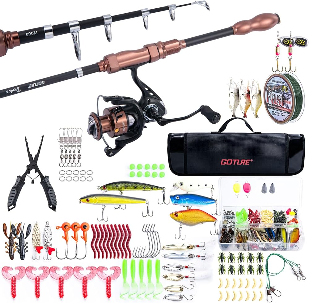 غوتور قضيب الصيد والكراهية مجموعات الصيد-عمود الصيد القطب غزل السحر مع حقيبة الناقل ، مجموعة صيد الصيد تلسكوبي للسفر للمياه المالحة العذبة الصيد الأسماك هدية هدية
