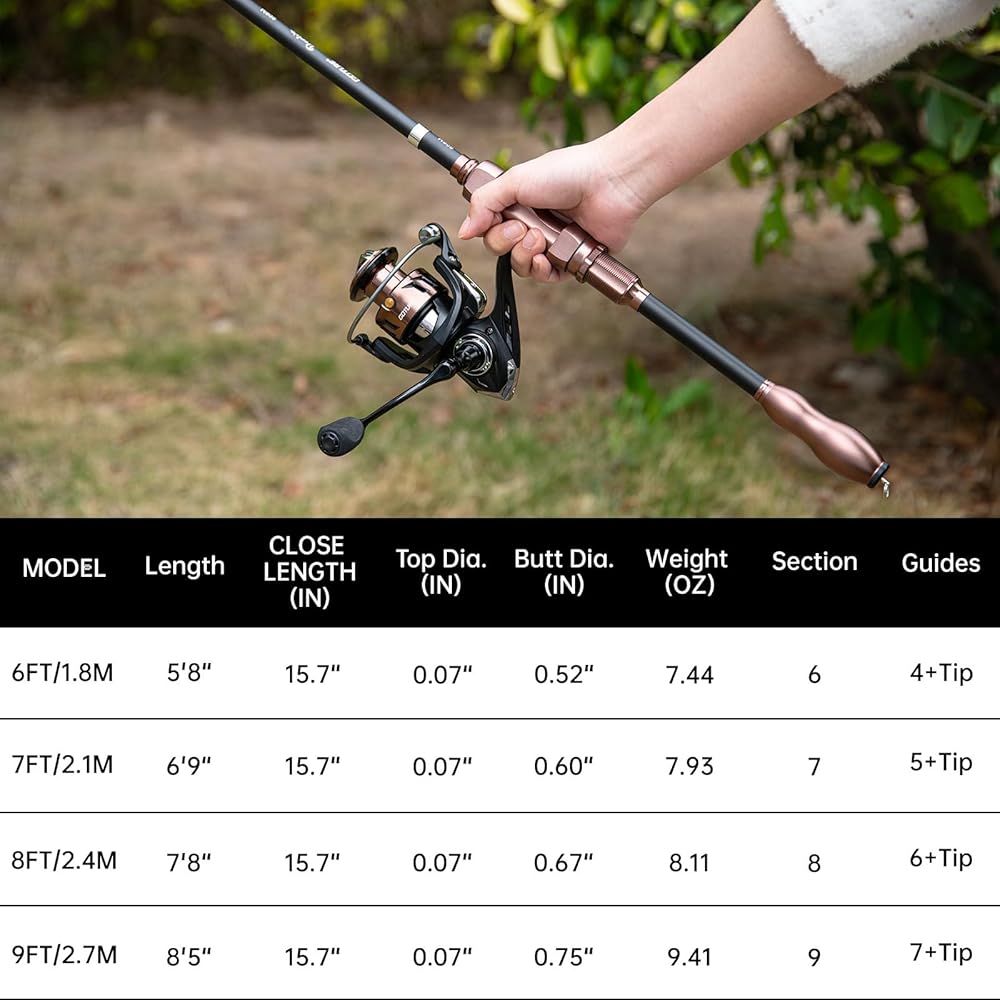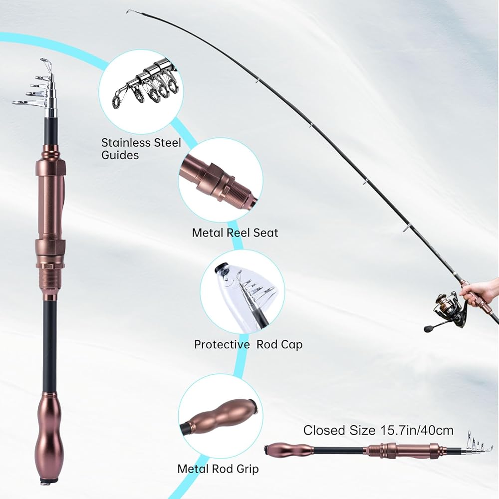 • قضيب الصيد التلسكوبي خفيف الوزن: تم تصميم قضيب الصيد التلسكوبي هذا من ألياف الكربون 24T ، مما يضمن قوة ومتانة خفيفة الوزن ولكنها استثنائية. يتم استخدام مواد الفولاذ المقاوم للصدأ والسيراميك للأدلة ، مما يضمن إرشادات الخط السلس ، وتقليل احتكاك الخط ، وتعزيز كفاءة الصيد