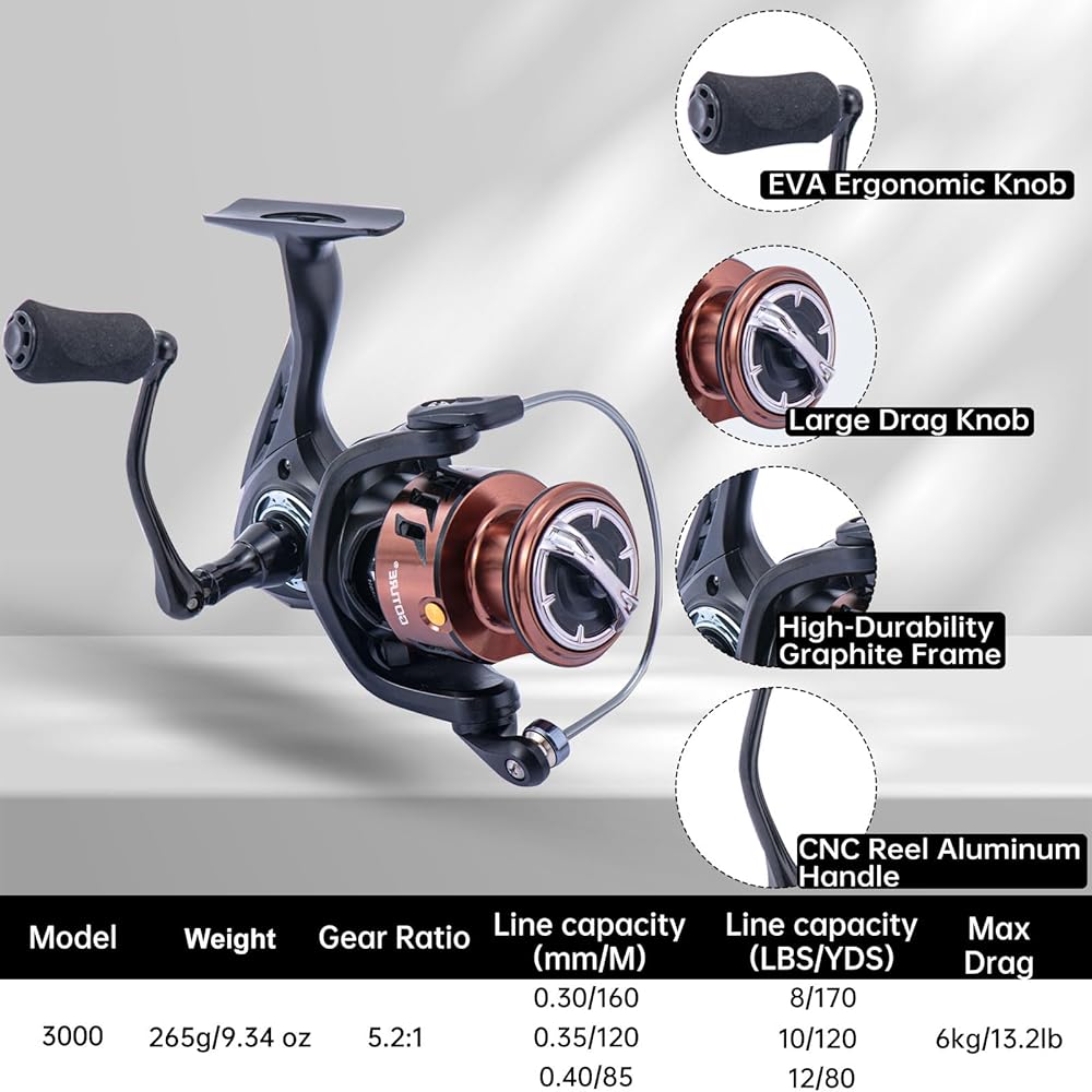 • بكرة الغزل الناعمة: التخزين المؤقت من سبيكة الألومنيوم سلسة لحماية خط الصيد من الانهيار والتشوه. تعطي نسبة التروس 5.2: 1 أداء بكرة الصيد فائقة النعمة. مقبض من الألومنيوم اليمنى أو اليسار القابل للتبديل ومقبض EVA ، قوي وطويل الأمد. قوتها العالية تجعل المزيد من الصب. إنه أفضل بكرة غزل شاملة لكل صياد