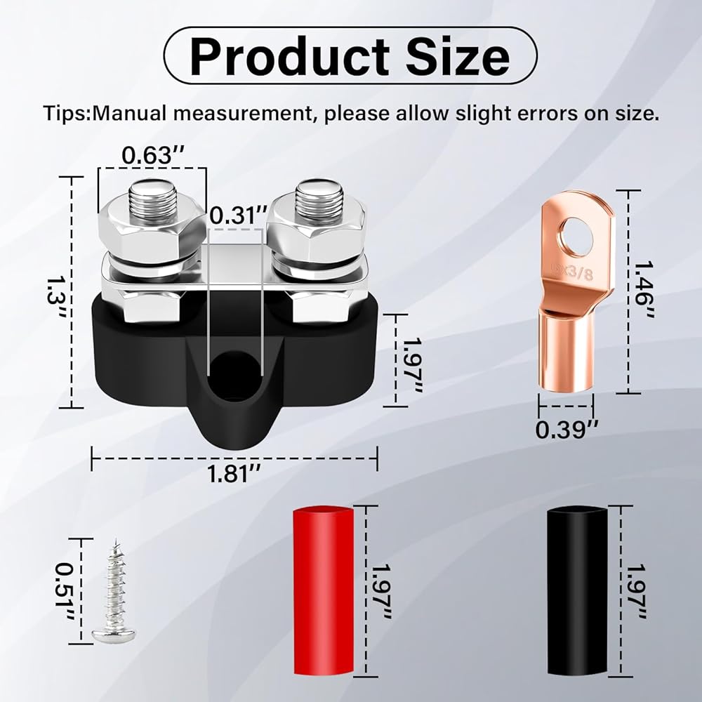 المواصفات: يمكن استخدام كتلة توزيع البطارية هذه مع 12V و 24V و MAX 48V. الحد الأقصى المستمر هو 200A.