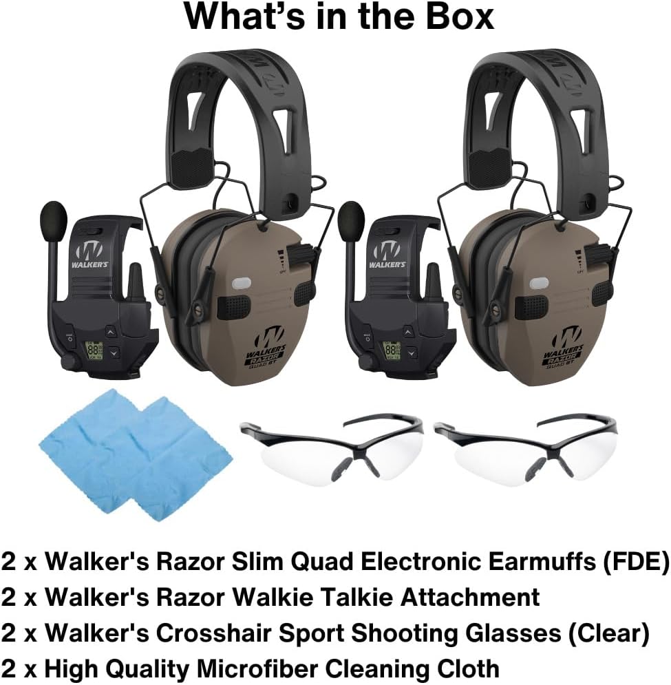 - تشمل الحزمة: Razor's Razor Slim Quad Electronic Ambuffs (Black ، 2 pack) ، Tactical Walkie Talkie (2 pack) ، نظارات التصوير الرياضي Crosshair (حزمة) ، وقماش تنظيف الألياف الدقيقة (حزمة)