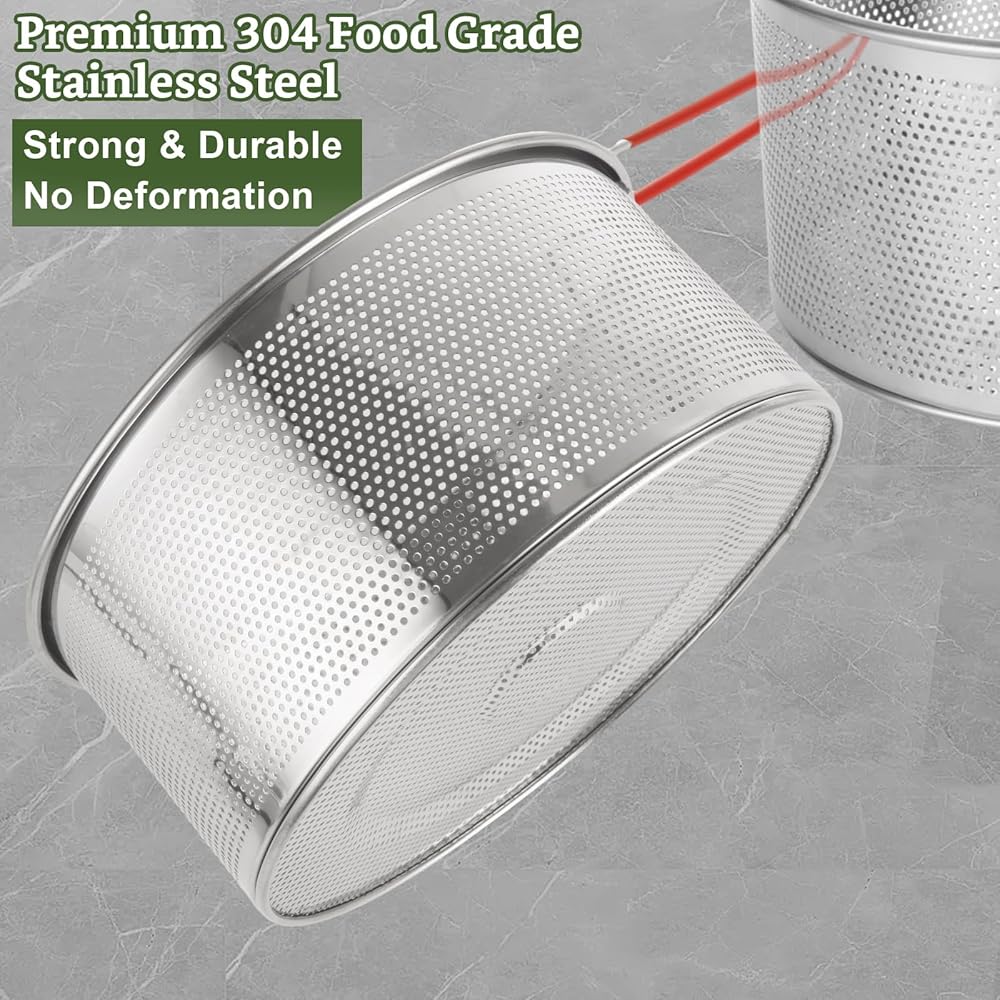 المواد الممتازة: مصنوعة من الفولاذ المقاوم للصدأ من طراز 304 فولاذ مقاوم للصدأ عالي الجودة ، ولن تشوه ، وهي آمنة. يبقي البناء القوي سلة مصفاة مستقرة ولن تنطلق