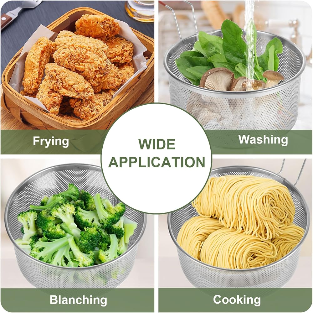 تطبيق واسع: سلة مصفاة الطعام الخاصة بنا مناسبة للبطاطس الفرنسية أو أصابع الدجاج أو حلقات البصل أو الروبيان أو الوجبات الخفيفة المقلية الأخرى ، ليس فقط من أجل القلي ، ولكن أيضًا لتصريف الفواكه والخضروات الشطف ، إنها أفضل رفيق في مطبخك