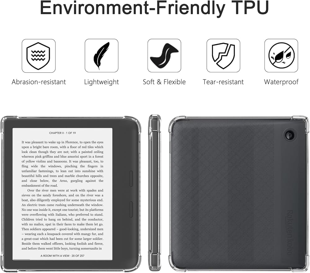 【Premium Material】-Made of flexible shockproof&absorbing premium TPU material making it more anti-cratch,not easy to turn yellow than other materials, the crystal case designed to preserve the original look of your Kobo.