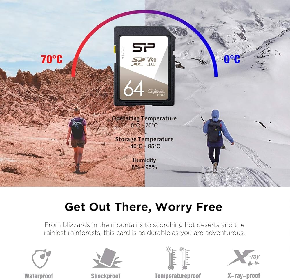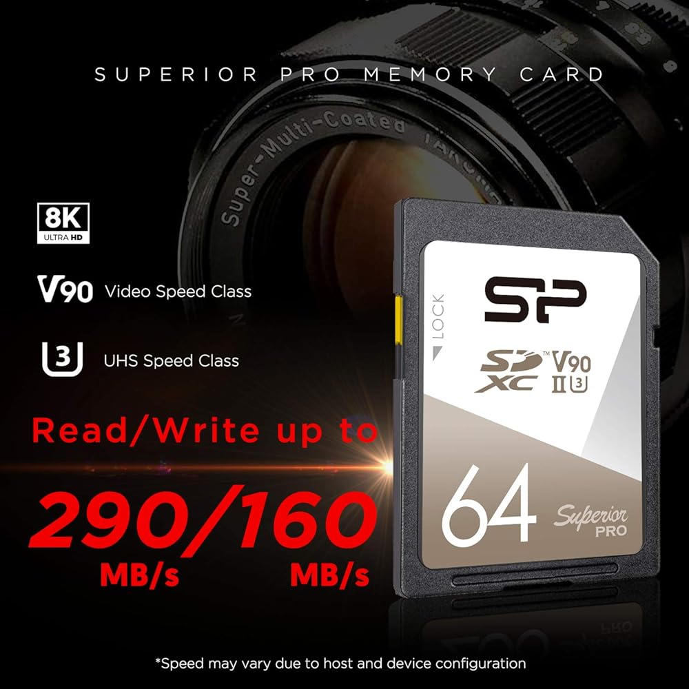 Silicon Power 64GB V90 Superior Pro R/W حتى 290/160 MB/S UHS-II SDXC CARD