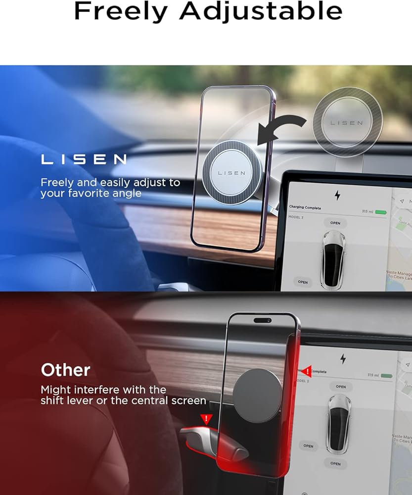 Lisen for Tesla Phone Mount ، من أجل Magsafe Car Mount [Never Block] للحصول على ملحقات Tesla Model 3 Y Phone Mount لصالح Tesla Phone حامل iPhone 16 Pro Max Plus 15 14 [Not Fit 2024 Model 3 Y]