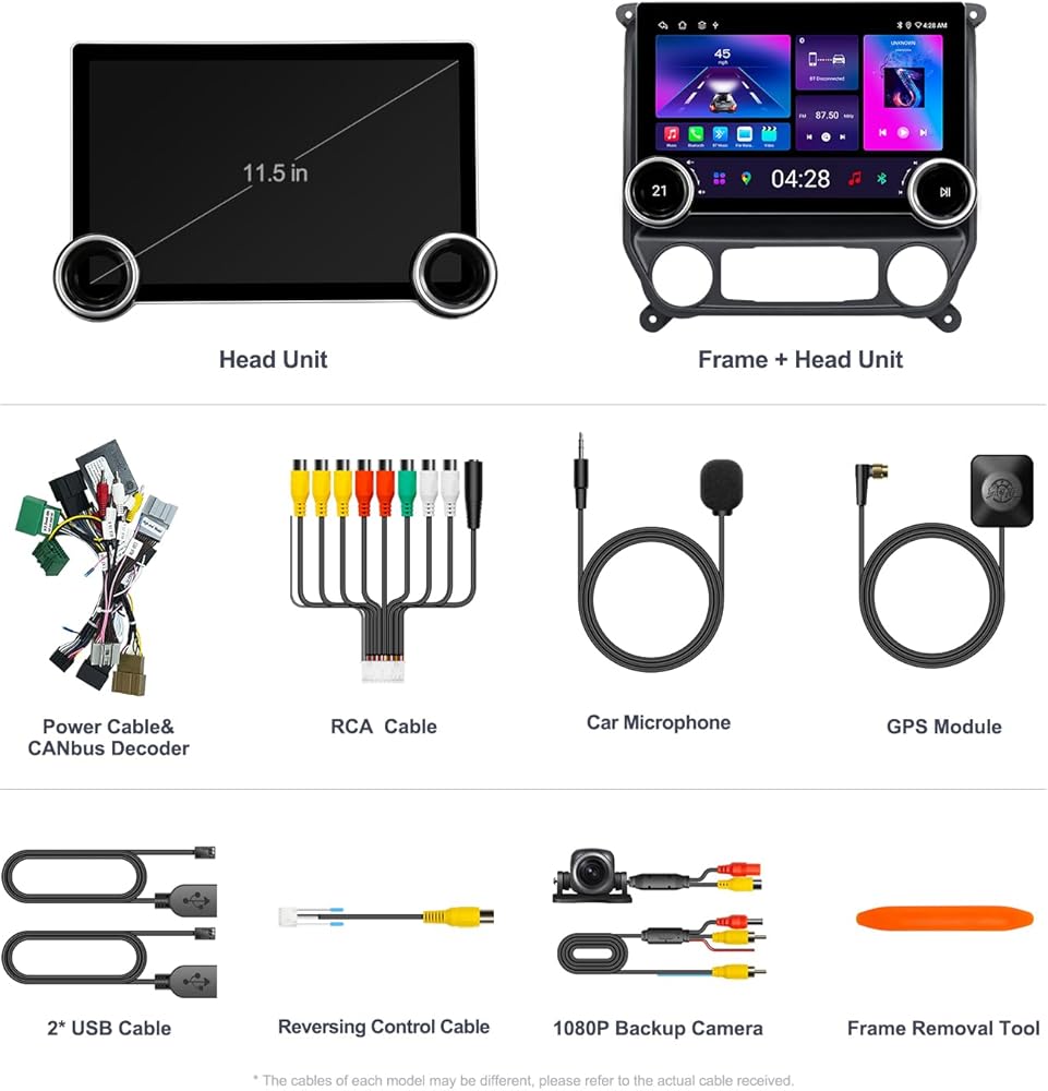 ملاءمة مصممة لراديو Chevy Silverado GMC Sierra Car Radio (2014-2018): يتوافق راديو Silverado هذا مع الطرز من 2014-2018.includes الوحدة الرئيسية ، الإطار المخصص ، كابلات الطاقة ، الميكروفون ، أدوات الإزالة ، الكاميرا الخلفية 1080 بكسل ، GPS ، مجموعة التثبيت ، طقم التثبيت ، ودليل المستخدم. يحافظ إعداد التوصيل والتشغيل الساحر على الأسلاك الأصلية ويدعم التحكم في عجلة القيادة (SWC).