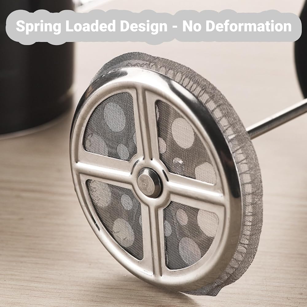 • Superior Filtration: Equipped with a high-density stainless steel filter, our French press effectively prevents coffee grounds from seeping into your brew, delivering a smooth, robust cup every time.