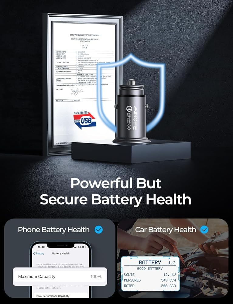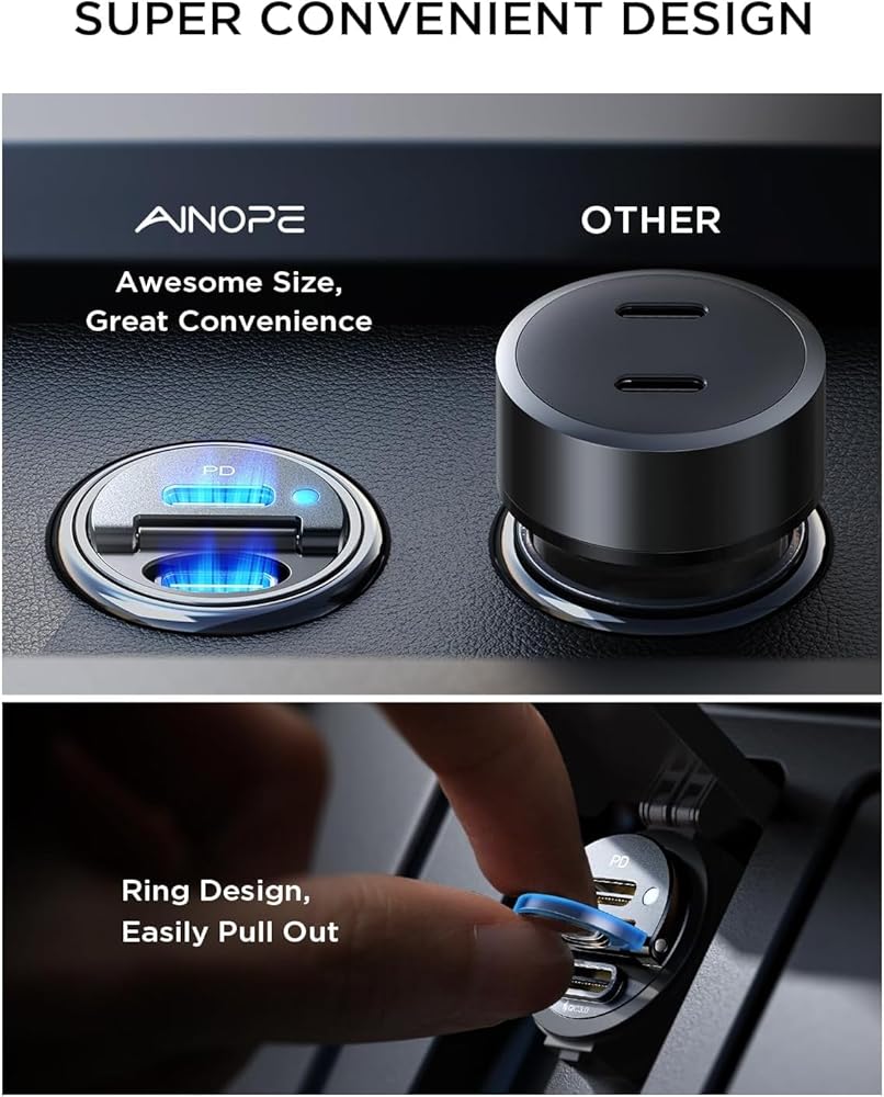 موانئ شحن USB C المزدوجة Super Super: يوفر محول شاحن Ainope USB C Car Charger شحنًا سريعًا للغاية لأجهزةك المحمولة أثناء التنقل. مع مخرجات PD 36W (MAX) و QC 36W (MAX) ، فإنه يشحن بكفاءة جميع الهواتف المحمولة C-PORT والتعيينات الإلكترونية. يرجى ملاحظة أنه على الرغم من أنه يمكن أن يتقاضى جهازين في وقت واحد ، إلا أنه لا يدعم الشحن المتزامن سريعًا.