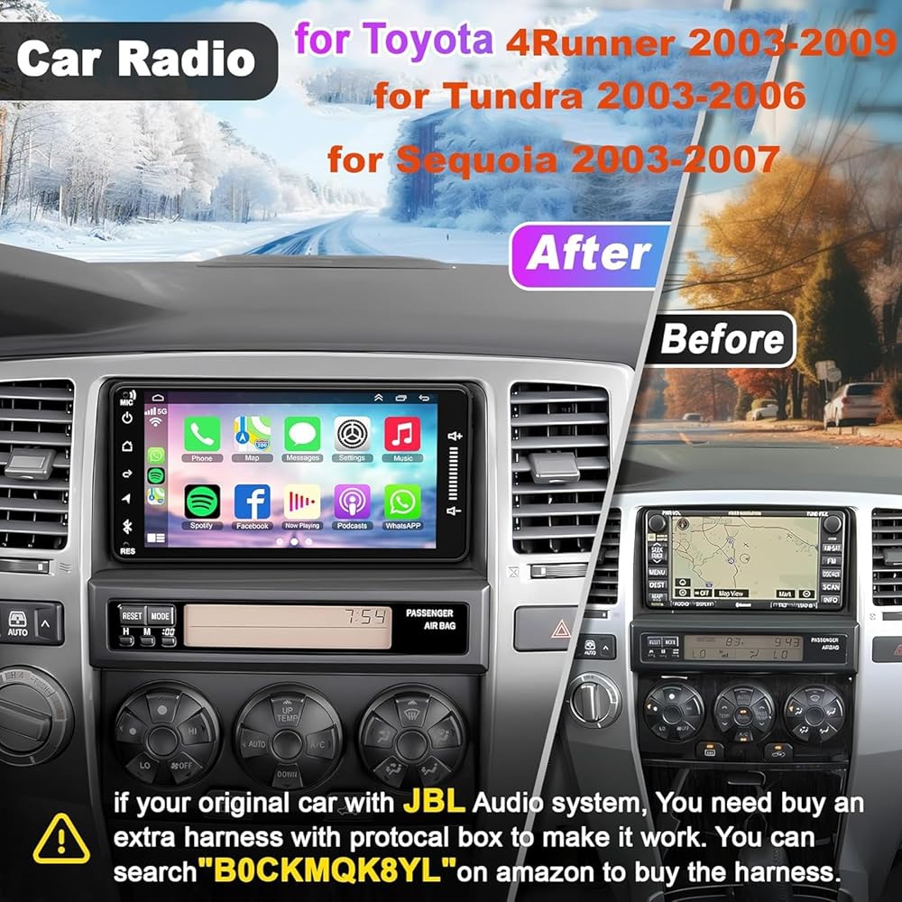 4G+64G CAR RADIO TOYOTA 4RUNNER 2003-2009 ، من أجل TUNDRA 2003-2006 ، لـ Sequoia 2003-2007 ، دعم Carplay & Android Auto ، Bluetooth & Voice Control ، Camera-Up Camera و Teadering Wheel ، GPS ، FM Radio