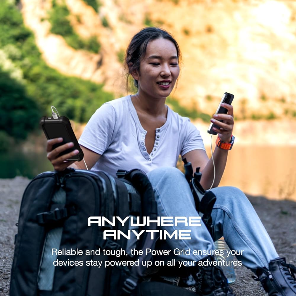 Plach Proof IPX6: المطر أو أشعة الشمس ، حزمة بطارية Power Grid Pro جاهزة للمغامرة! من خلال تقنية IPX6 المقاومة للبلاش ، يحافظ السكن الوعرة على شاحنك المحمول آمنًا حتى في الطقس العاصف.