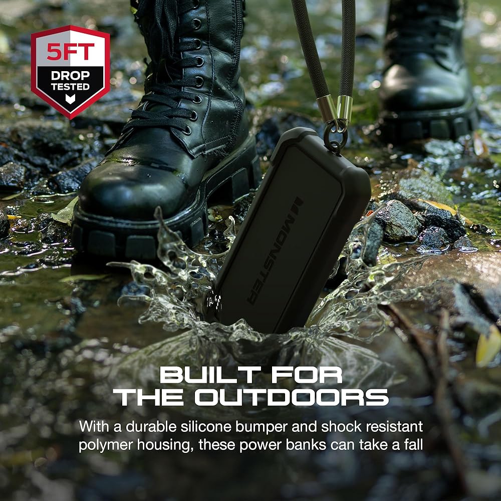 Monster Fast Charge Tech: Charge بسرعات البرق! تم تصميم بنك الطاقة المحمول الخاص بنا لرفع أجهزتك بأمان وبسرعة ، مما يوفر ما يصل إلى 65 واط للراحة أثناء التنقل.