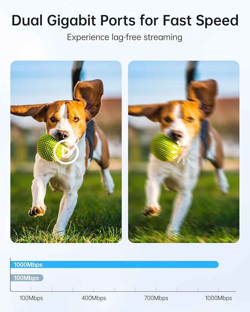 يدعم جسر WiFi سرعات سريعة بمنافذ 2 1000 ميجابت في الثانية ، حيث يصل إلى أقصى سرعة نقل تبلغ 1200 ميجابت في الثانية وسرعة الشبكة تبلغ 433 ميجابت في الثانية