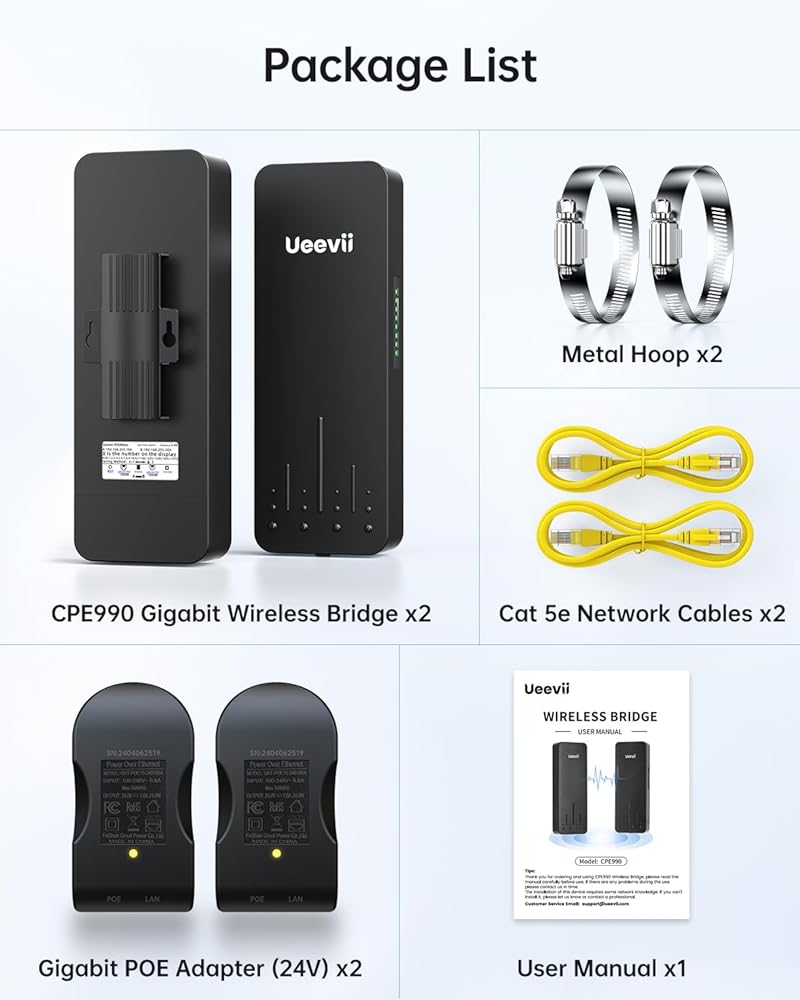 يميز UEEVII CPE5824 Wireless Bridge CPE رابطًا لاسلكيًا مزدوج النطاق ، ودعم كلاً من معدات شبكة 2.4 جيجا هرتز و 5 جيجا هرتز