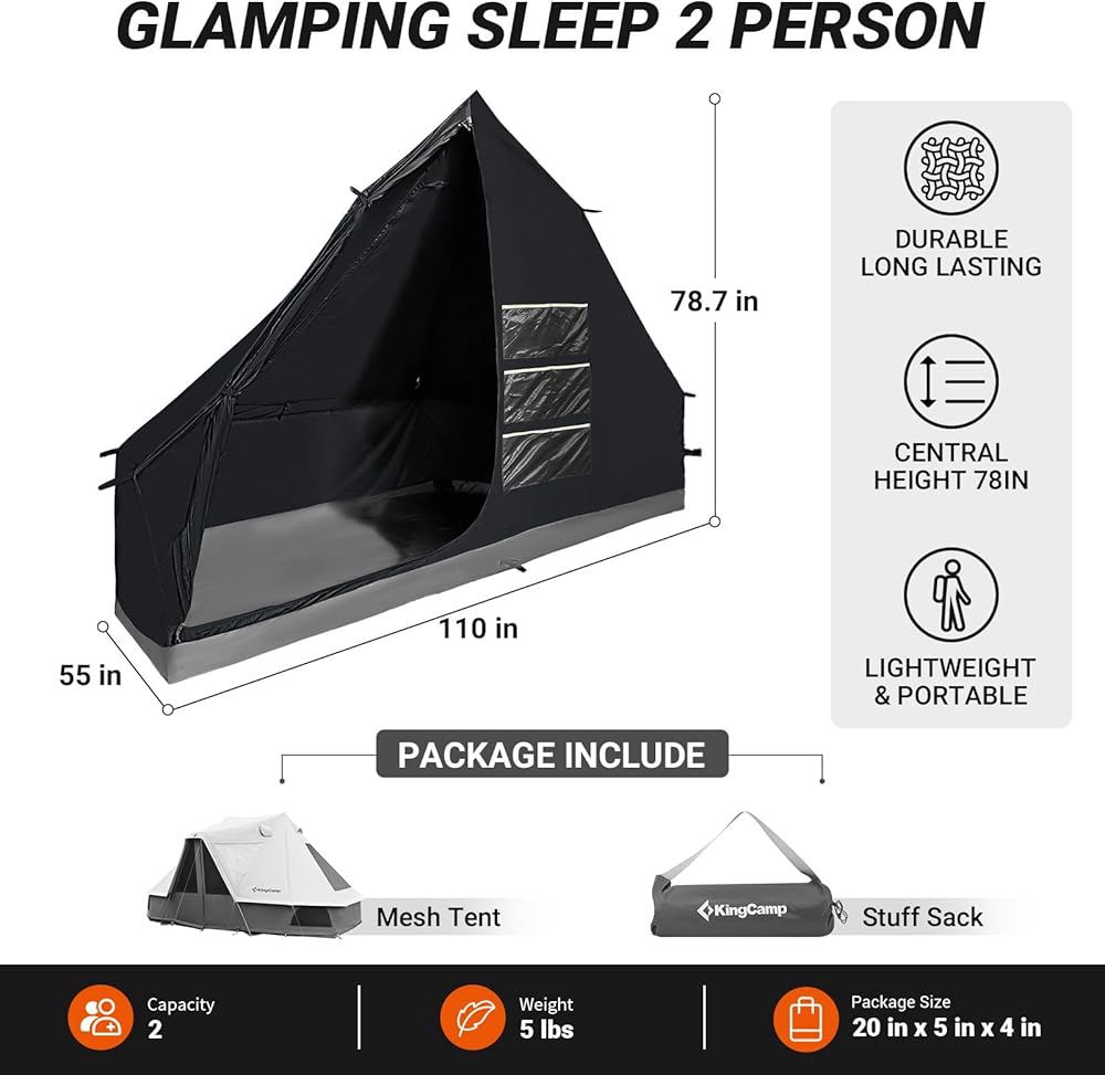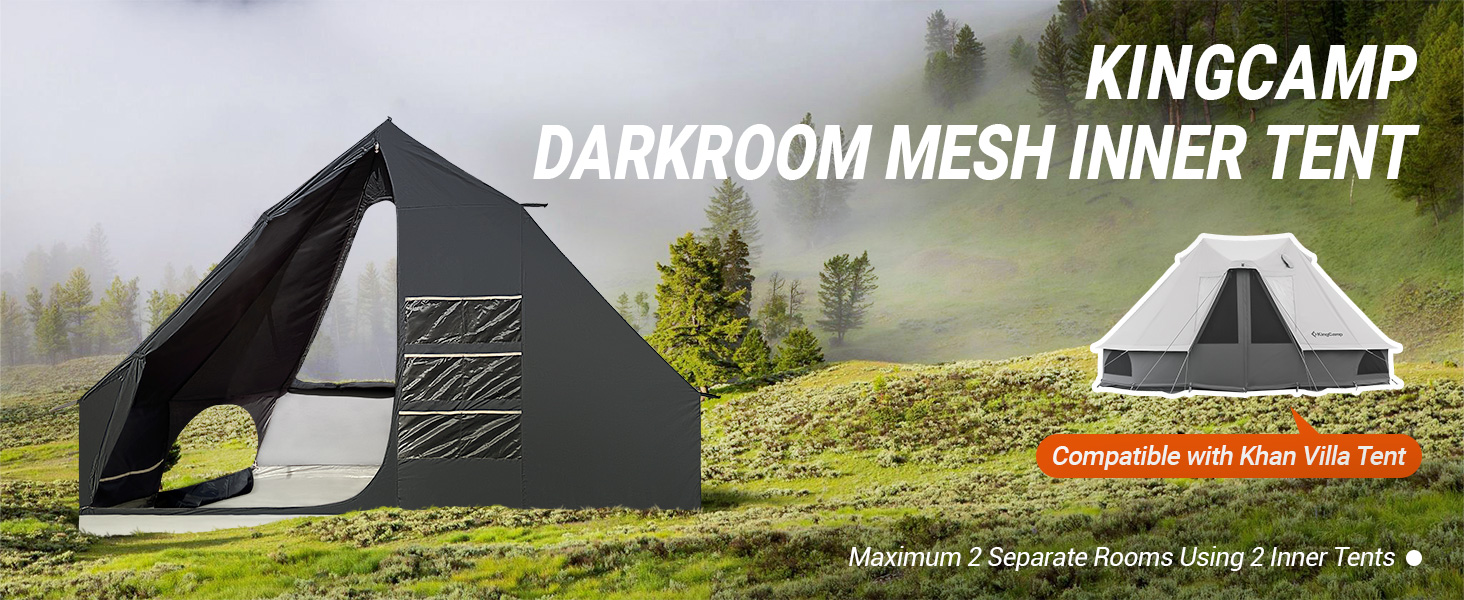 خيمة Kingcamp Khan الداخلية لشخصين ، خيمة غرفة داكنة مع شبكة عالية الكثافة ، مقاومة للرياح مضادة للماء لخفيف الوزن للتخييم على الظهر المشي لمسافات طويلة RV