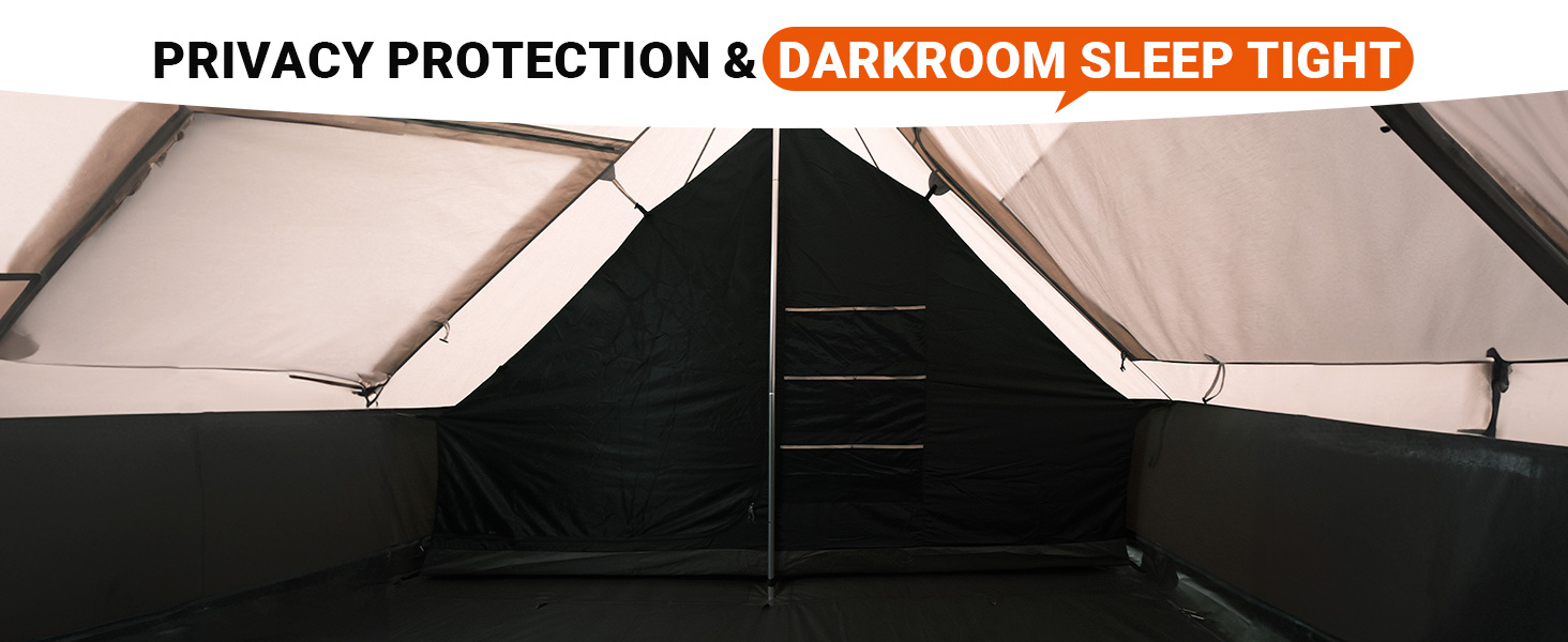 • 【خيمة الغرفة المظلمة】 قم بتحويل ملاذك في الهواء الطلق على الفور باستخدام أرضية خيمة التثبيت السريعة. عزز الراحة الخاصة بك في الحدود المظللة من ملاذ شاشة.