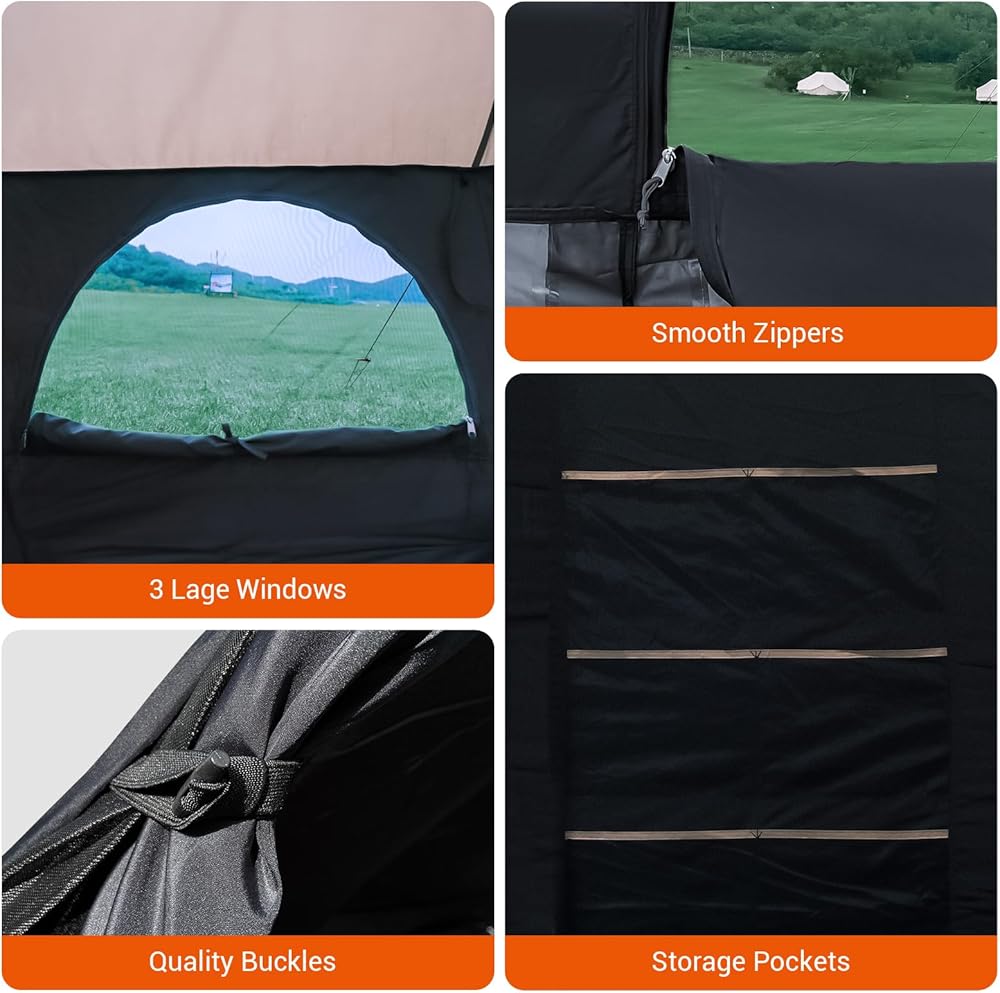 • 【سهلة الإعداد القابلة للغسل】 قم بتوصيل الخيمة الداخلية بسهولة بالهيكل الرئيسي مع الأبازيم ، مما يضمن المتانة والبساطة في الإعداد.