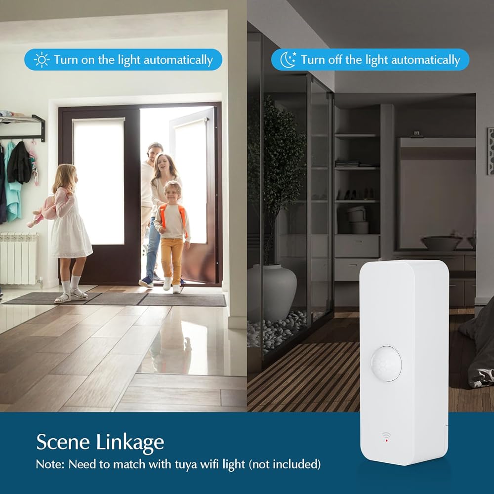 رابط المشهد والحياة الذكية : استخدم تطبيق Smart Life App/Tuya لإنشاء برنامج مشهد مفضل ، والذي سيتم تشغيله عند اكتشاف الحركة في المشهد المحدد. عندما يتم تعيين الأوامر المناسبة ، مثل "شخص ما يمر بواسطة" "الأضواء تشغيلها تلقائيًا "، وعندما تحرك الحركة ، فإنها تؤدي إلى الأمر المقابل. عندما تعود إلى المنزل ، قم بتطبيق Smart Life App/Tuya تشغيل الضوء تلقائيًا ، وتحقق روابط المشهد والمساعدة في تحقيق الحياة الذكية