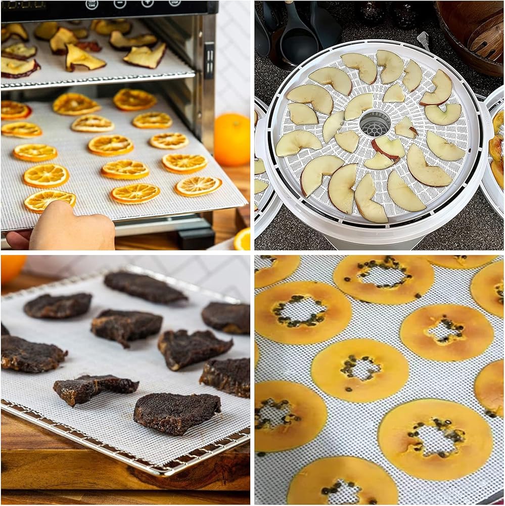 تطبيق عريض - يمكن استخدام حصيرة شبكية غير مناسبة للسيليكون مناسبة لمعظم مجففات الفاكهة وشبكة باخرة ، لتجفيف الفواكه والحبوب والخضروات ، وصنع جلد الفاكهة ، ولحم البقر ، ولفائف الفاكهة وما إلى ذلك.