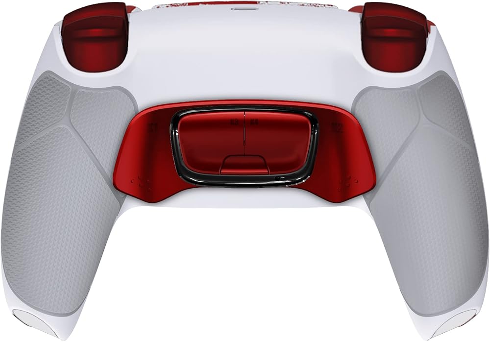 يمكنك تنشيط برنامج REMAP أثناء اللعبة وتعيين 15 زرًا كحد أقصى (X ، O ، مثلث ، مربع ، لأسفل ، أسفل ، يسار ، يمين ، L1 ، L2 ، R1 ، R2 ، L3 ، R3 ، لوحة اللمس) إلى الأزرار الخلفية. المقابض المطاطية يمكن أن تعزز الشعور باليد والحصول على قبضة أفضل لوحدة التحكم الخاصة بك.