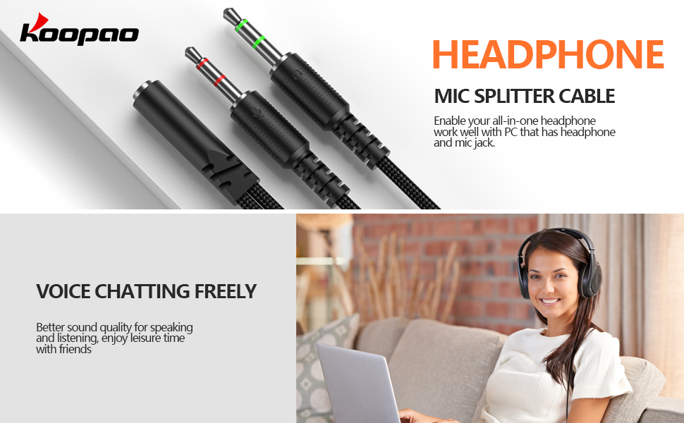 • 【محول فاصل سماعات الرأس】 كابل Koopao Splitter تقسيم مقبس TRRS 3/8 بوصة 1 بوصة إلى 2 قابس استريو ذكور 2 3.5 ملم. قم بسهولة بتوصيل سماعات رأس مقبس من 4 ألقاف بجهاز الكمبيوتر أو الكمبيوتر الذي يحتوي فقط على منافذ ميكروفون وسماعات الرأس المنفصلة فقط.