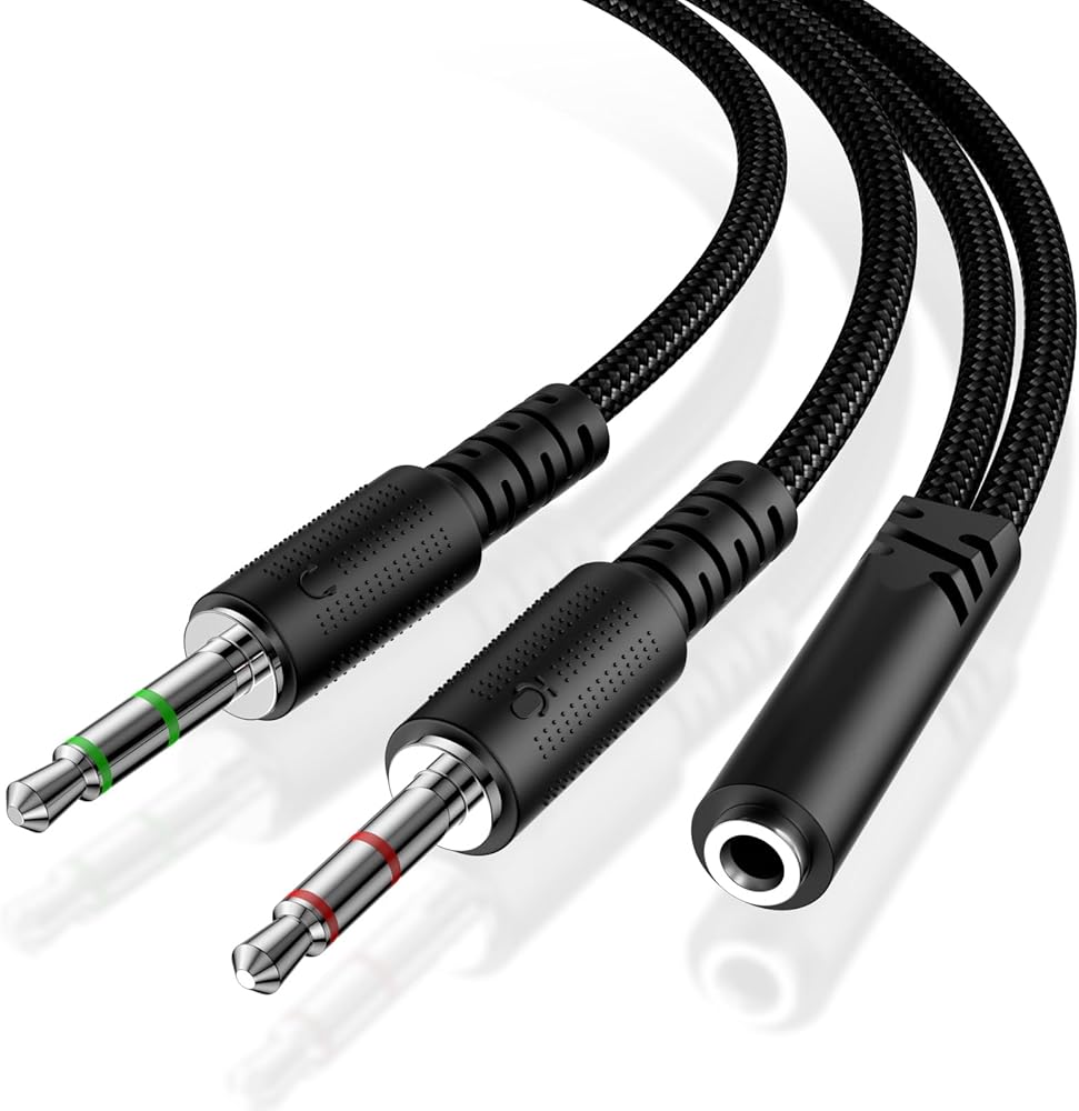 سماعة رأس Koopao 3.5 مم من الكبل MIX AUX للكمبيوتر ، سماعات الرأس 3.5 مم أنثى إلى 2 منفذ أذن ميكروفون مزدوج ميكروفون جاك جاك جاك إلى محول ألعاب مكبر الصوت.